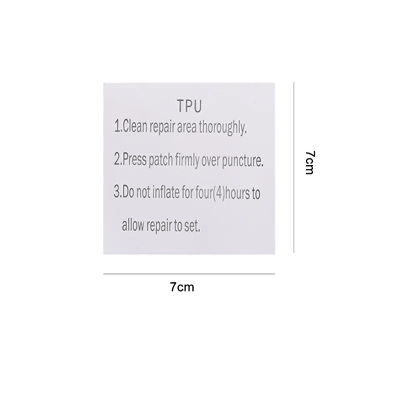 Название продукта: водонепроницаемый патчРазмеры: одна штука, 7*7 см, 3,5 г, комплект из 3 предметов, 7*7 см, 7,5 гЦвет: прозрачныйМатериал: ТПУИспользование продукта:Ремонт надувных лодок, подходит для всех видов высокоценных надувных продуктов, таких как надувные кровати, надувные лодки, батуты, надувные диваны, плавательные кольца, пляжные шары и т. д. Он также может быть использован для ремонта или скрепления различных материалов, в том числе: ПВХ, нейлон, холст, искусственная кожа, резина, Различные пластмассы, металлы, стекло и т. Д.Особенность продукта:1. Изделие является самоклеющимся, его можно наклеить после отрыва бумаги, не нужно применять клей.2. Он водонепроницаемый и водостойкий и может быть наклеен во влажной среде. После вставки его можно использовать в воде.Шаги по ремонту:1. Очистите поверхность возле щели или отверстия и держите ее сухой.2. Оторвите отделочную бумагу, сразу Наклейте пластырь на отверстие, полностью Закройте ее и нажмите, чтобы она крепко прилипалась.
