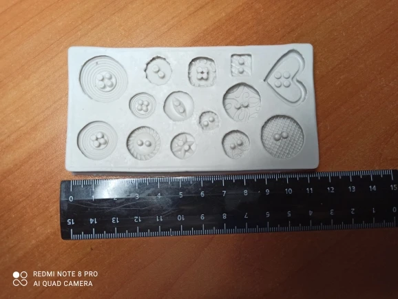 Силикон очень специфичный, немного торчат по краям куски, но это можно обрезать. Форма очень маленькая, пуговицы будут крошечные.