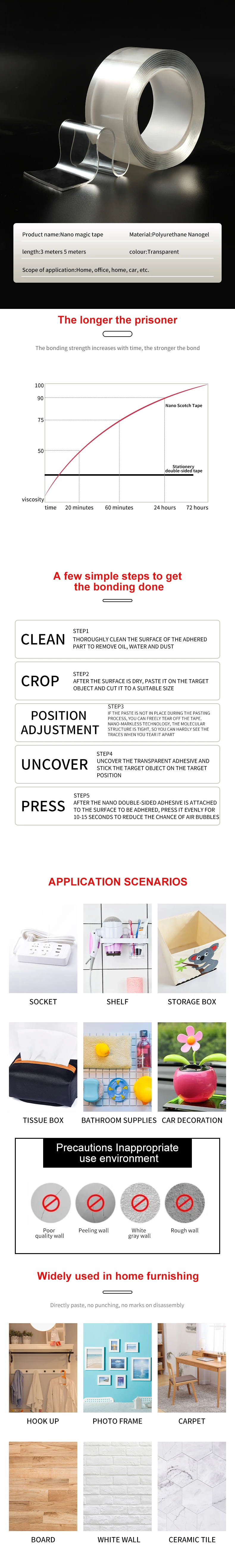 Домашняя многоразовая лента двусторонний клей для лица супер сильный бесследный нано клей гаджет cinta magica doble cara прозрачный