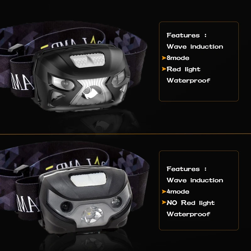 1. Индукционная фара на палец, когда ваша рука находится рядом с фарой в пределах 15 см, фара включится, когда вы оставите фару пальцем, она будет выключена.2. Фара содержит аккумулятор. Вы можете использовать usb-кабель для зарядки фар.3. У него есть два переключателя, один из рутинных переключателей и Индукционная swicth.