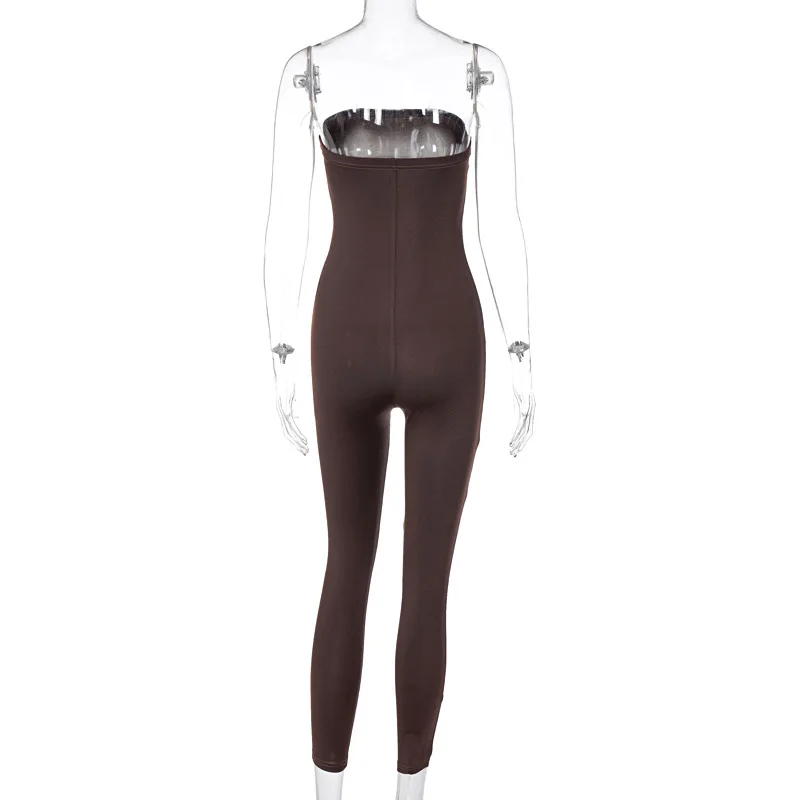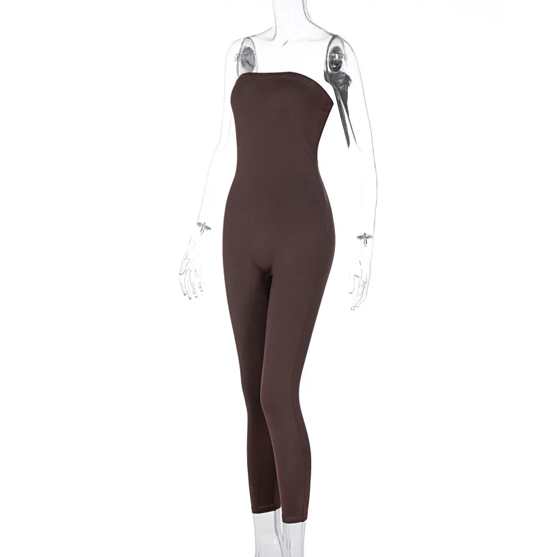 Женский комбинезон без бретелек, однотонный Облегающий комбинезон с вырезом лодочкой и открытой спиной, модная пикантная уличная одежда, однотонный комбинезон, весна-лето 2021
