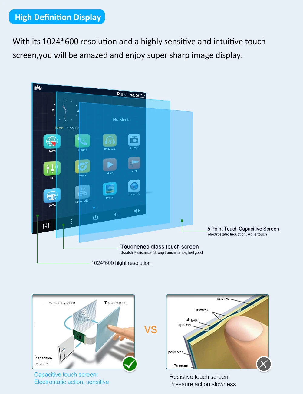 1. Емкостный сенсорный экран/разрешение HD 1024*600