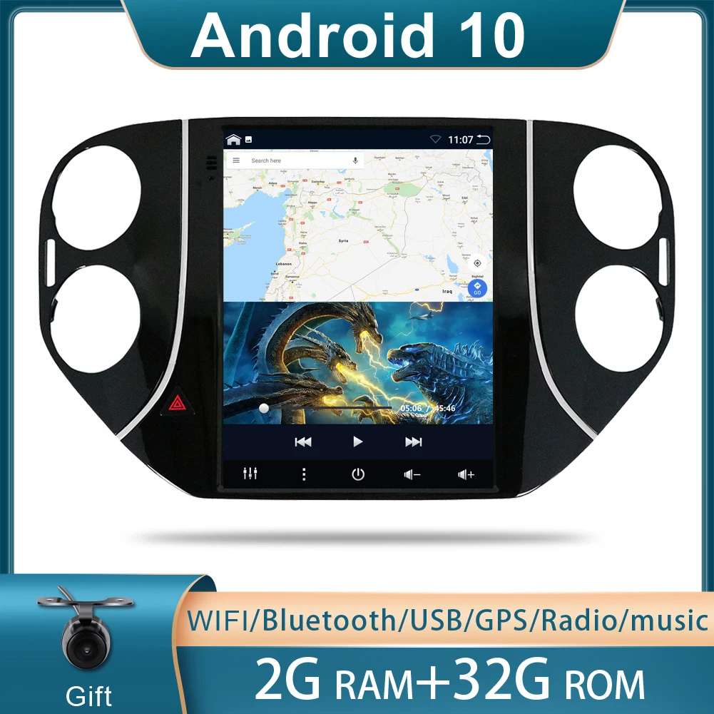 Автомобильный мультимедийный плеер 2din с экраном Tesla Android 10 GPS для Vw Tiguan 2010-2017 Авторадио BT Навигация стерео головное устройство