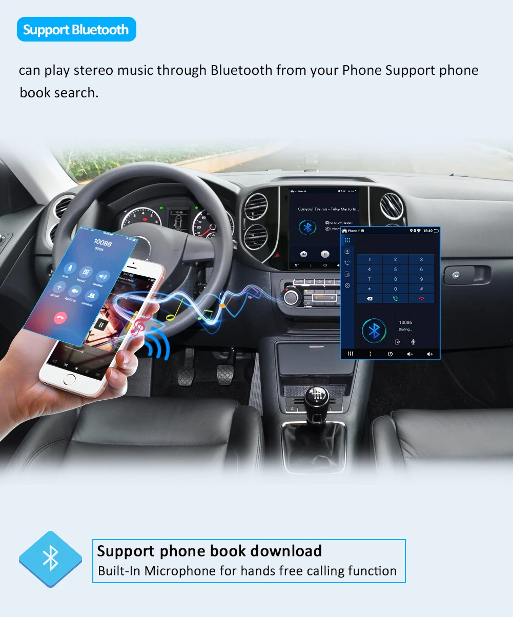 8. Bluetooth поддерживает все бренды мобильных телефонов, ввод телефонной книги, воспроизведение музыки, Поддержка поиска имени по A-Z