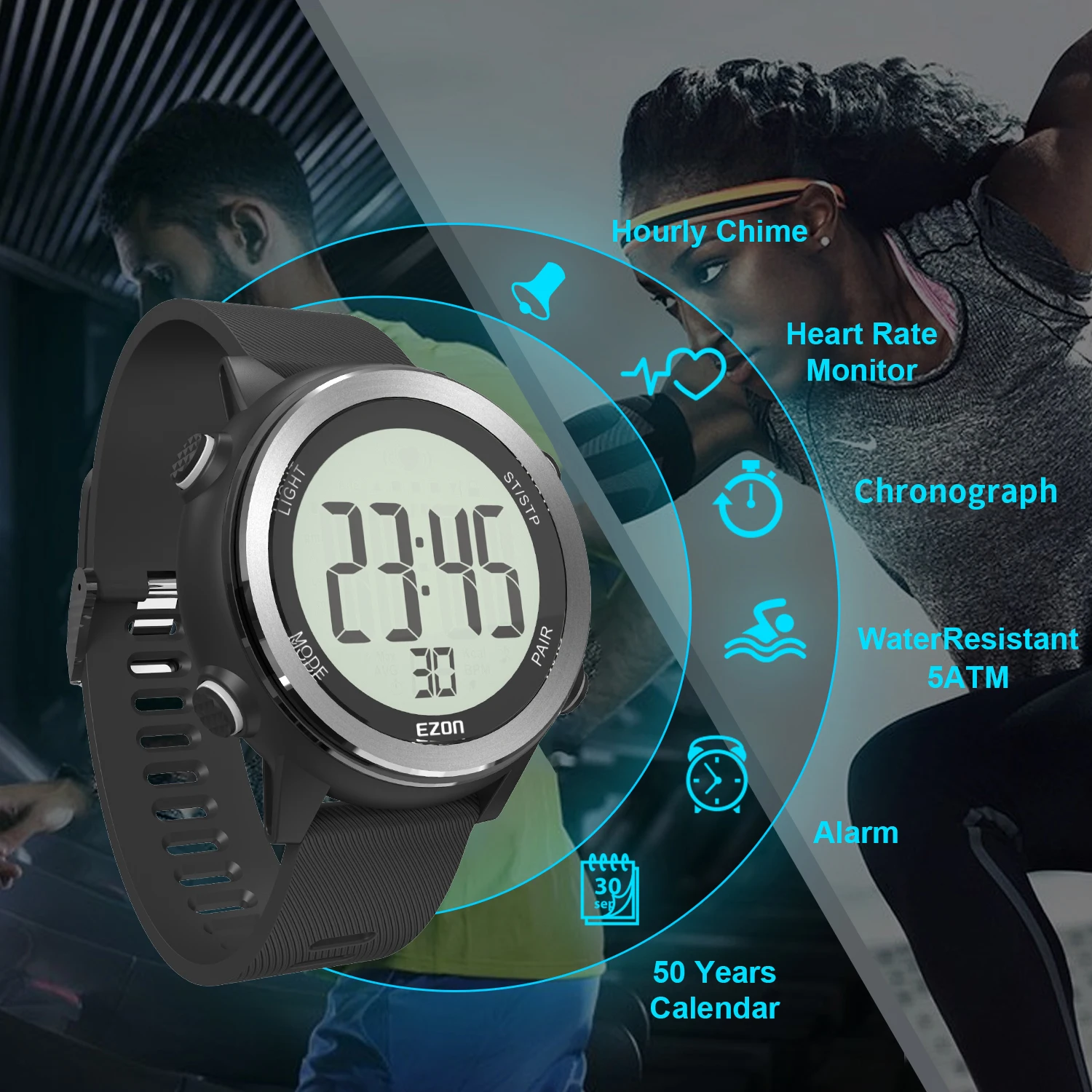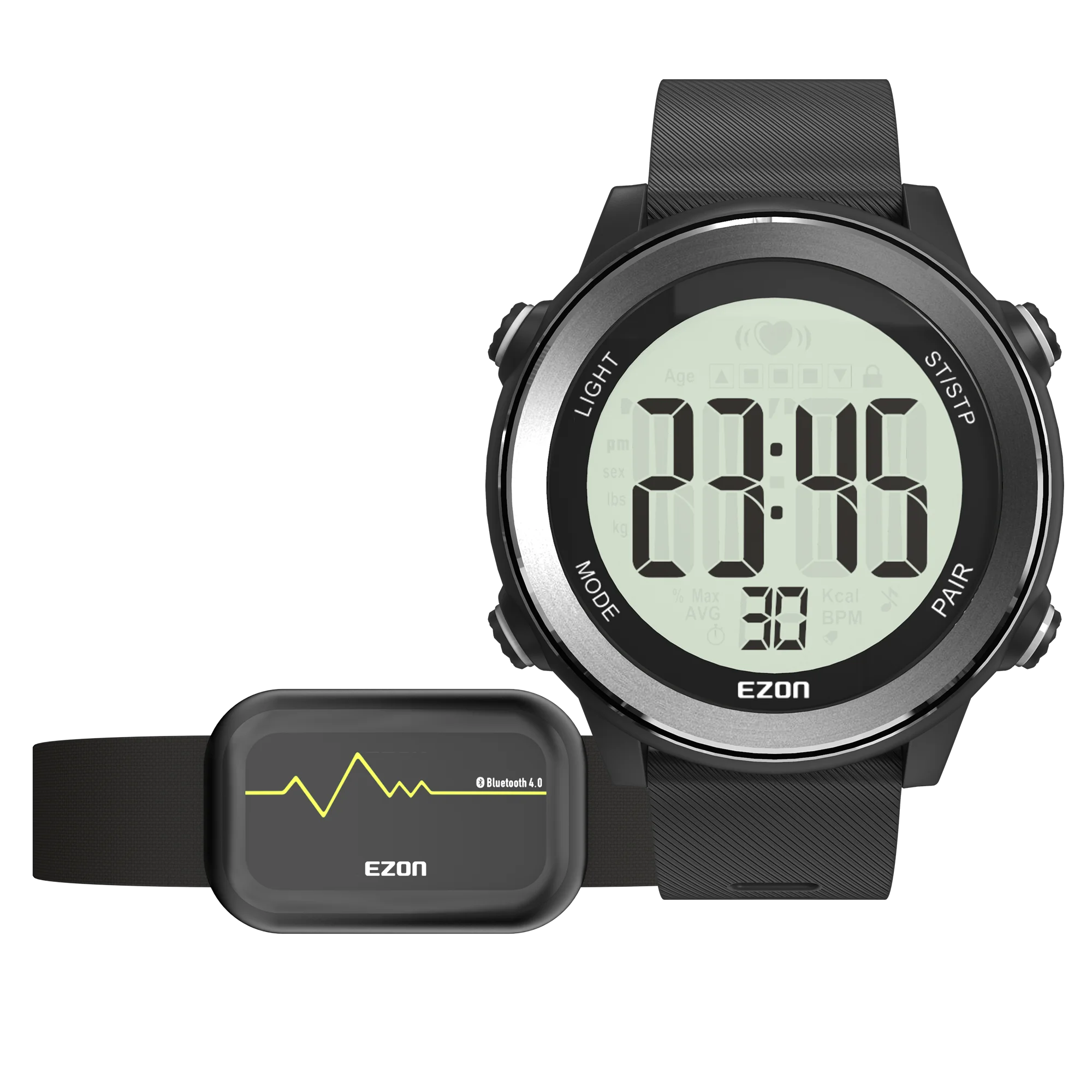 Часы наручные EZON T057 Мужские Цифровые, спортивные с пульсометром, ремешком, для фитнеса и бега, водонепроницаемость 50 м, будильником, подключением по Bluetooth