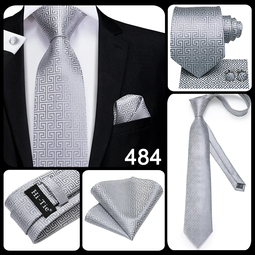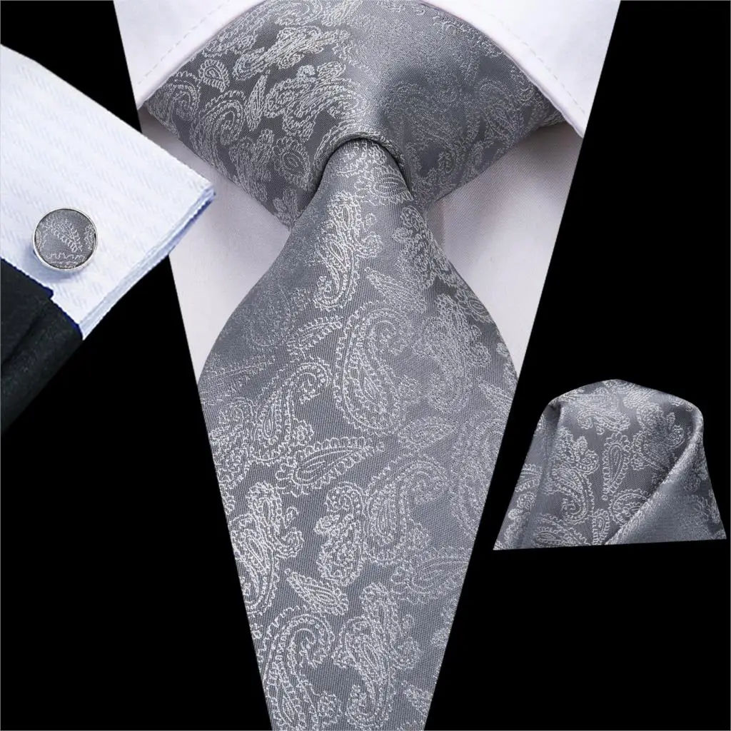 Hi-Tie, роскошный, серебряный, новинка, мужской галстук, Gravata, Шелковый, Свадебный галстук для мужчин, Hanky, запонки, набор, модный дизайн, Деловой, Прямая поставка