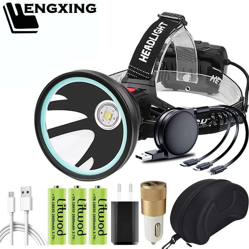 Xhp90.2 Белый Желтый цвет светодиодный налобный фонарь фонарик 32 Вт лампы 3*18650 аккумулятор банк питания 7800 мАч свет