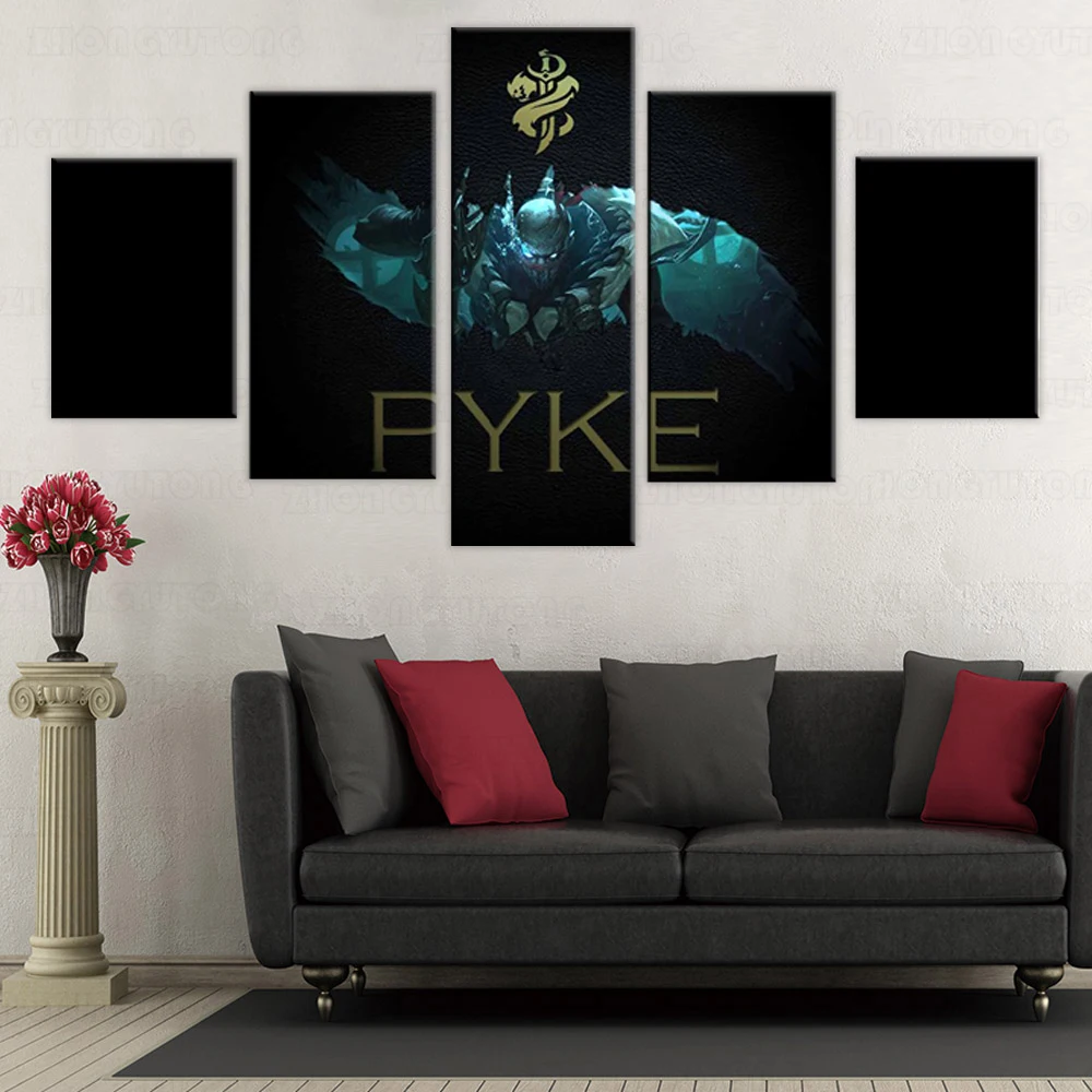 Современный домашний декор, плакаты, картины, печать на холсте, 5 шт., модульный, Lol League Of Legends Pyke Game, декор для гостиной
