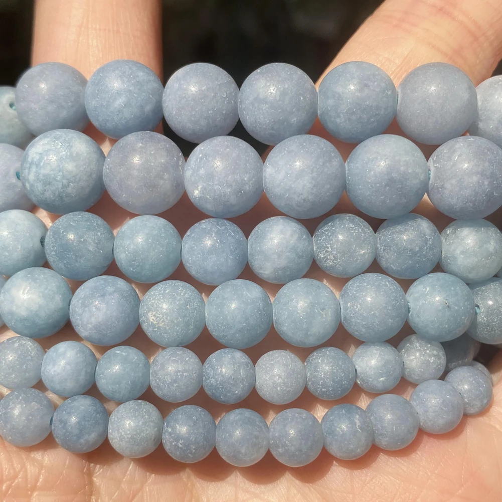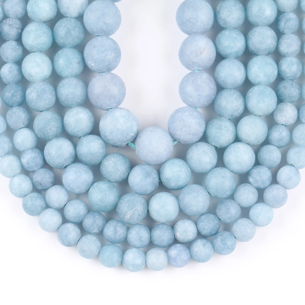 С тусклой полировкой, матовый синий нефрит халцедон аквамарином круглой Бусы из натурального камня, бусины для самостоятельного изготовления ювелирных изделий браслет аксессуары