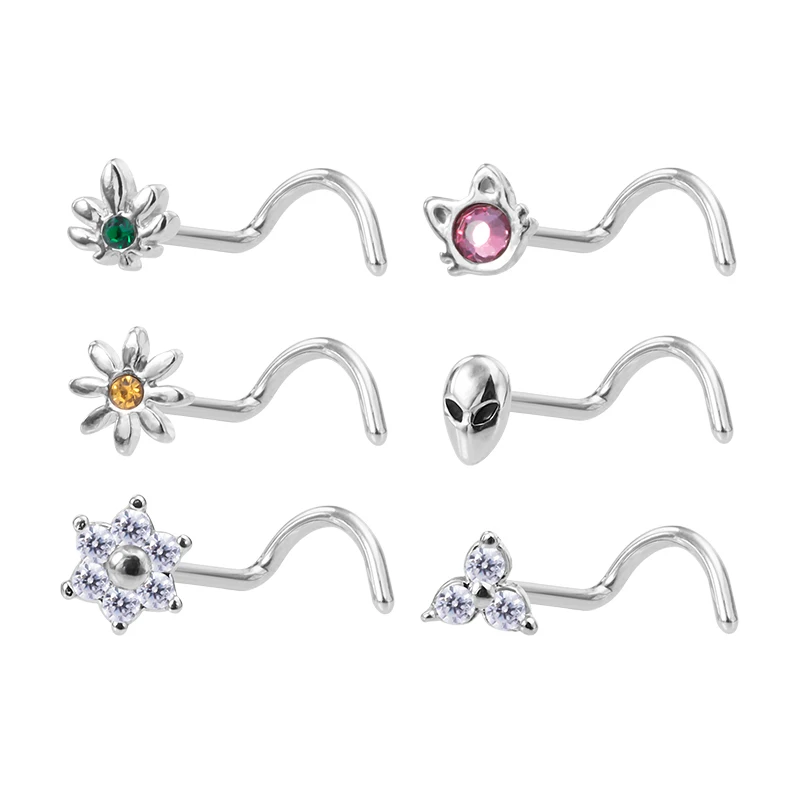 1 шт Новый Кот инопланетянин цветок лист Нос Пирсинг нос винт кольца для женщин 20 г хирургическое стальное кольцо-гвоздик в нос элегантные ювелирные изделия для тела