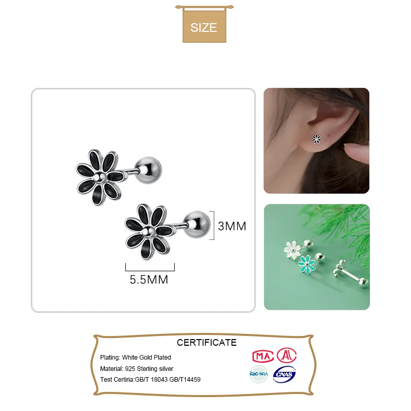Серьги-гвоздики женские из серебра 925 пробы, с глазурью