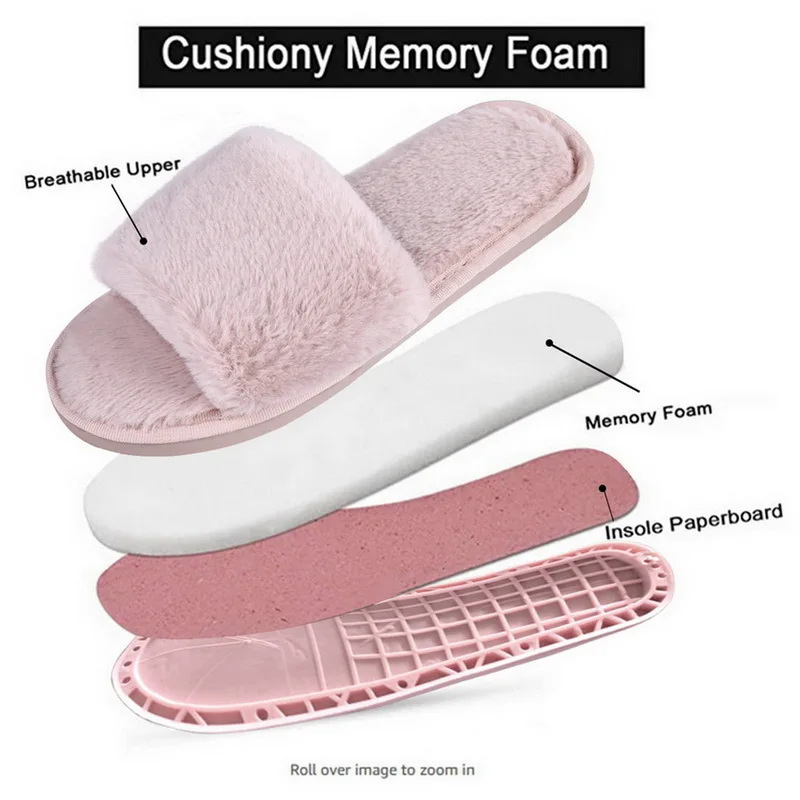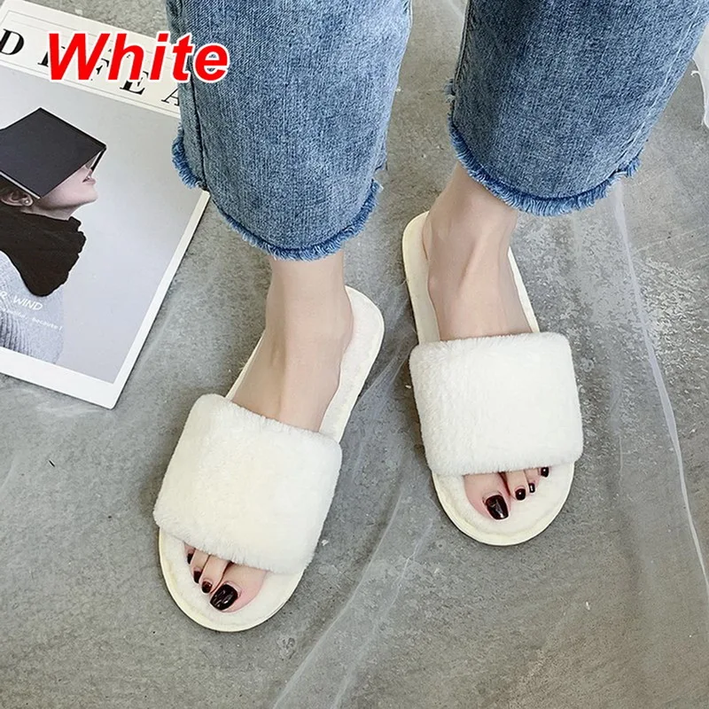 Женские домашние тапочки из искусственного меха, мягкие плюшевые меховые шлепанцы с открытым носком, зимняя модная обувь, 2021