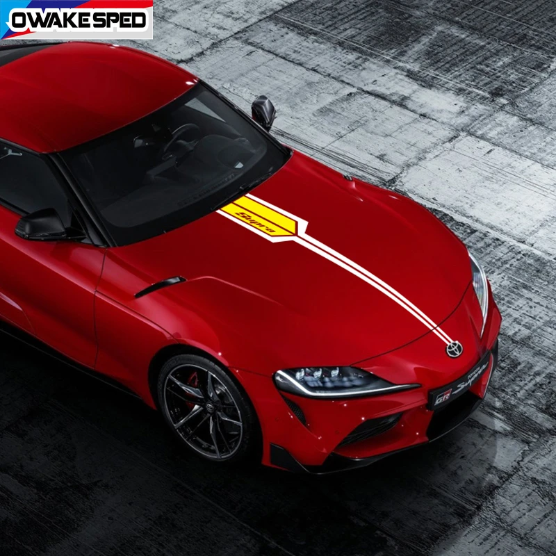 Гоночная Спортивная полоска, автомобильная наклейка на капот для Toyota SUPRA, Автомобильная крышка двигателя, декоративные виниловые наклейки, внешние аксессуары