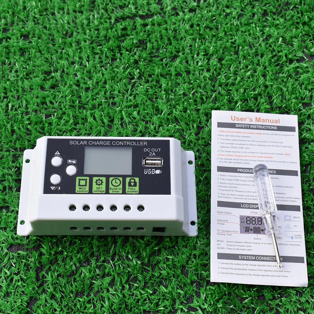 Контроллер заряда солнечной батареи с ЖК-дисплеем, 10 А20 А, 12 В24 В, солнечное зарядное устройство для солнечной панели 100 Вт, 200 Вт, комплект домашсветильник