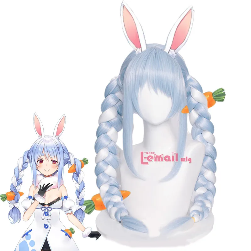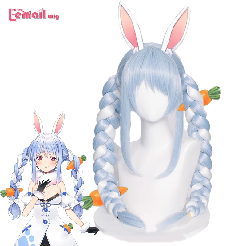 L-email парик Hololive Usada Pekora парики для косплея Youtuber Usada парик длинные плетеные волосы конский хвост синие термостойкие синтетические волосы
