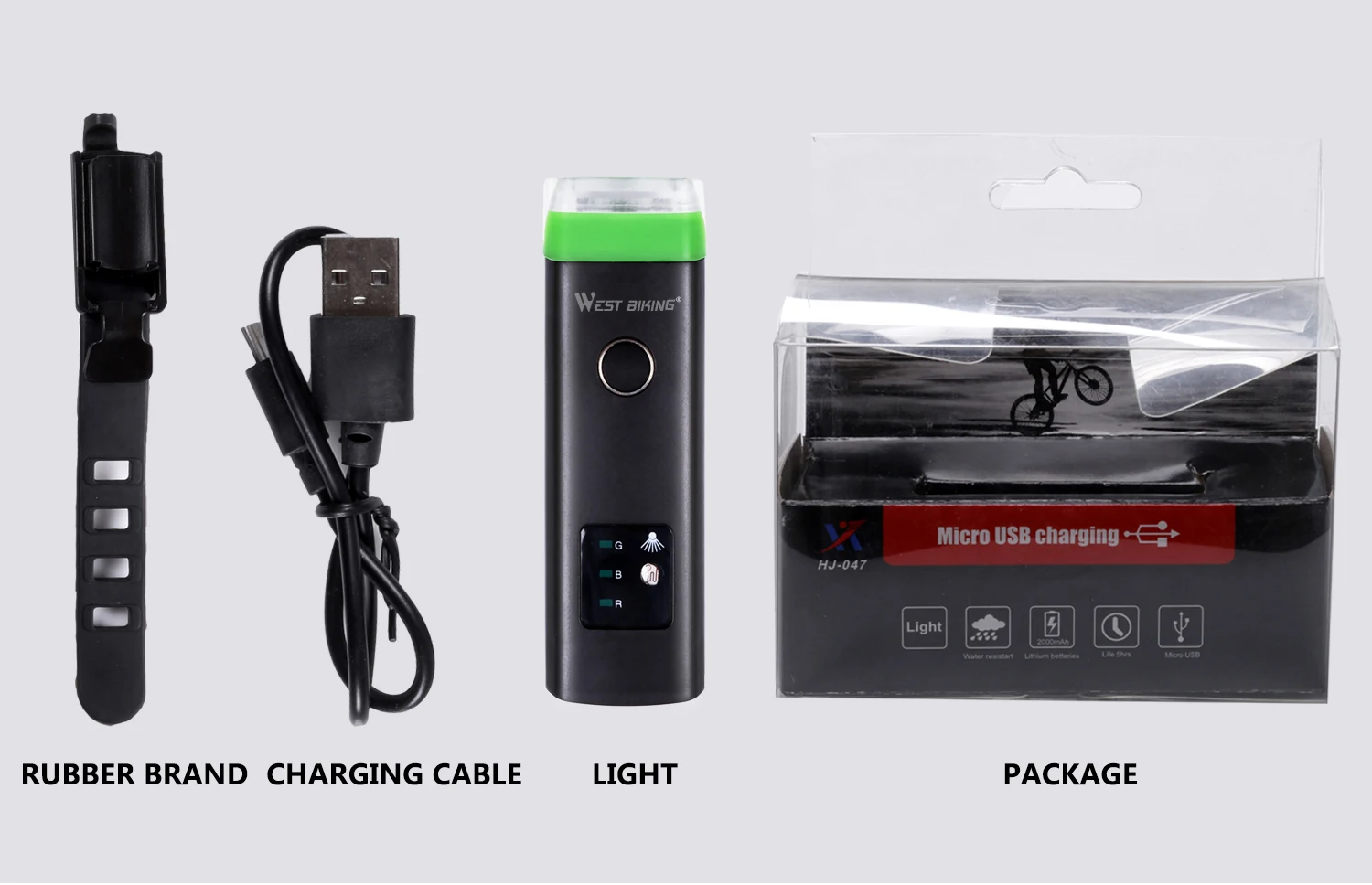 Фонасветильник велосипедный, водонепроницаемый, с USB-зарядкой, WEST BIKING