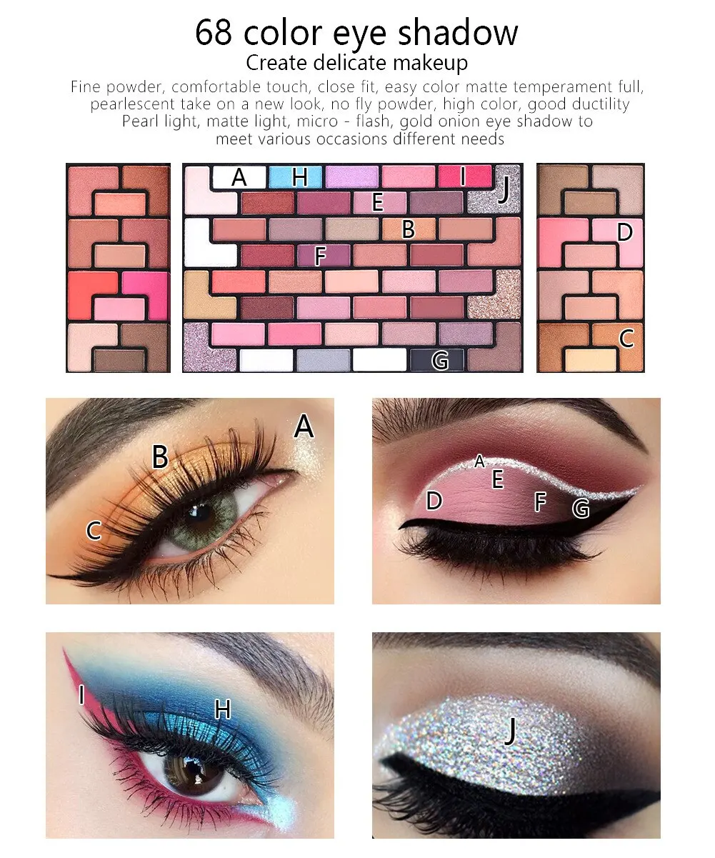 Miss Rose 2022 Новинка 68-цветная коробка для теней для век многофункциональная коробка для макияжа Lantejoulesинструменты для макияжа подарочный набор для макияжа матовая помада для губ