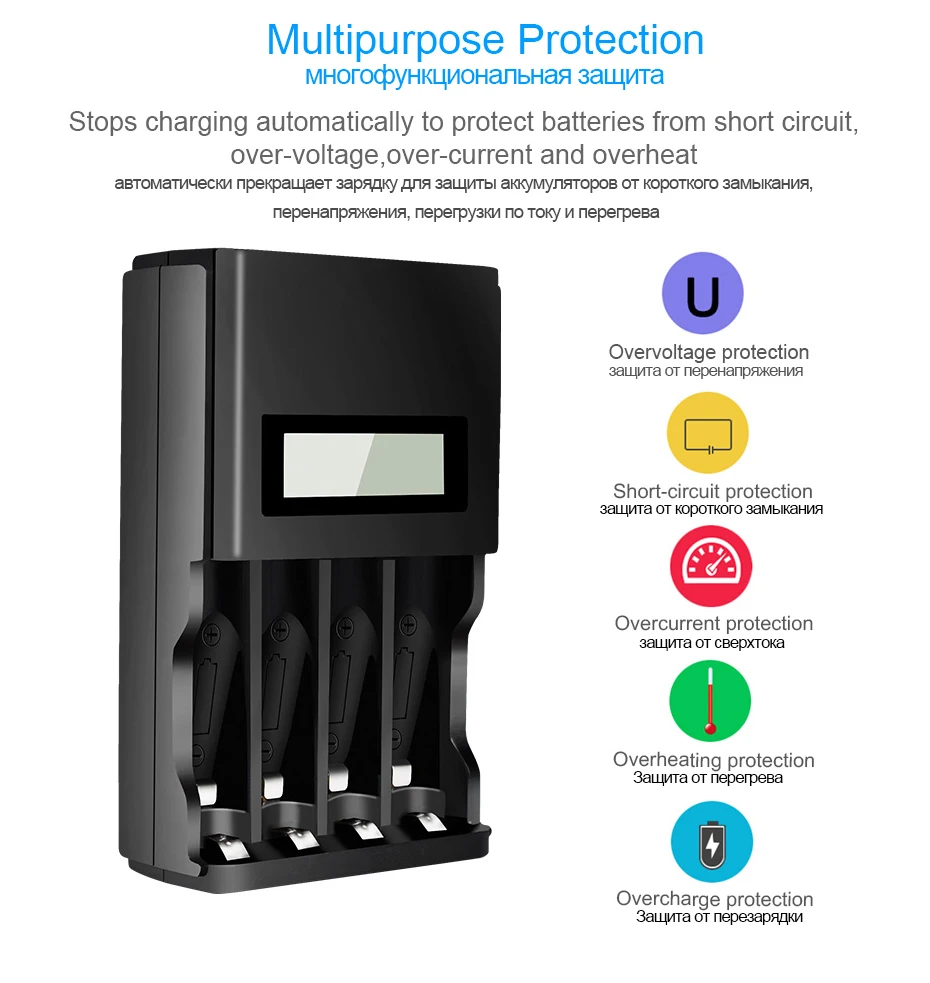 4 слота, Быстрое интеллектуальное зарядное устройство с ЖК-дисплеем...