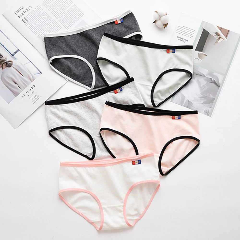 Трусики хлопковые для девочек-подростков, нижнее белье с низкой талией, простые Симпатичные интимные трусы для девочек, 5 шт.комплект