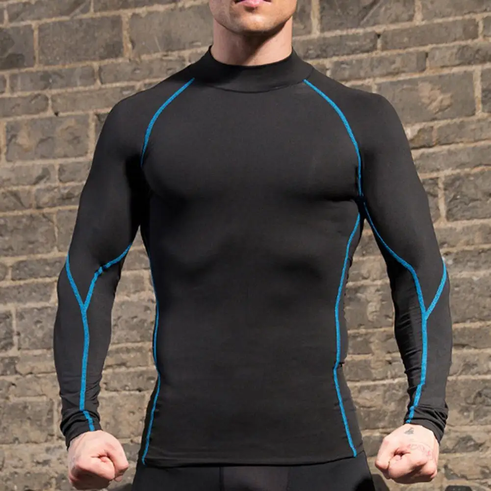 Мужская Осенняя Спортивная футболка с длинным рукавом и высоким воротником, термобелье, Топ