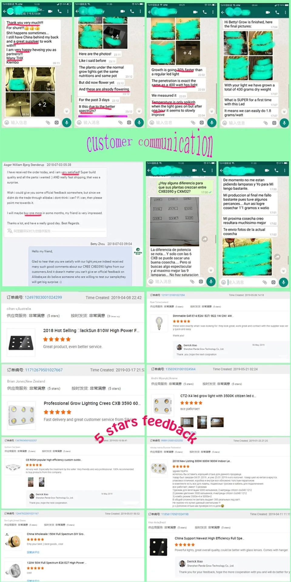 CF Grow посвятил себя разработке, производству и продаже светодиодных ламп для выращивания в течение 10 лет. Мы являемся лидером led grow светильник s, НЛО и другой красный и синий grow светильник также разработаны нами в первую очередь. CXB3590 grow lights-это наши новейшие продукты. И наша команда разрабатывает более высокотехнологичные новые светодиодные лампы для выращивания. Мы надеемся, что сможем предложить Вам лучшие и лучшие продукты и лучший сервис.
