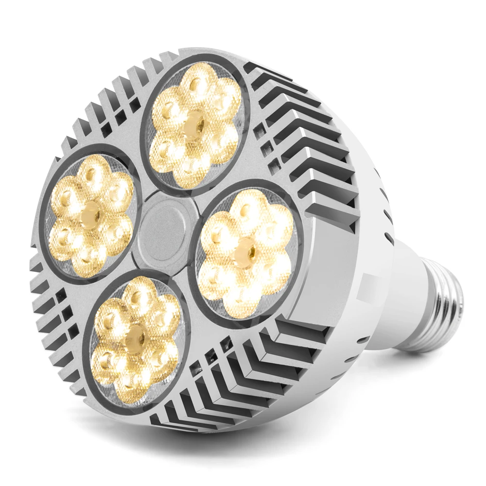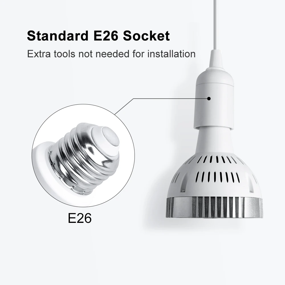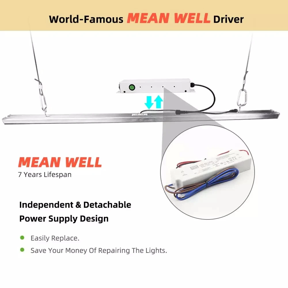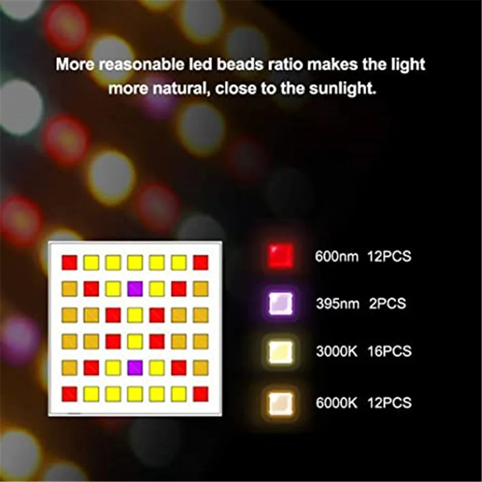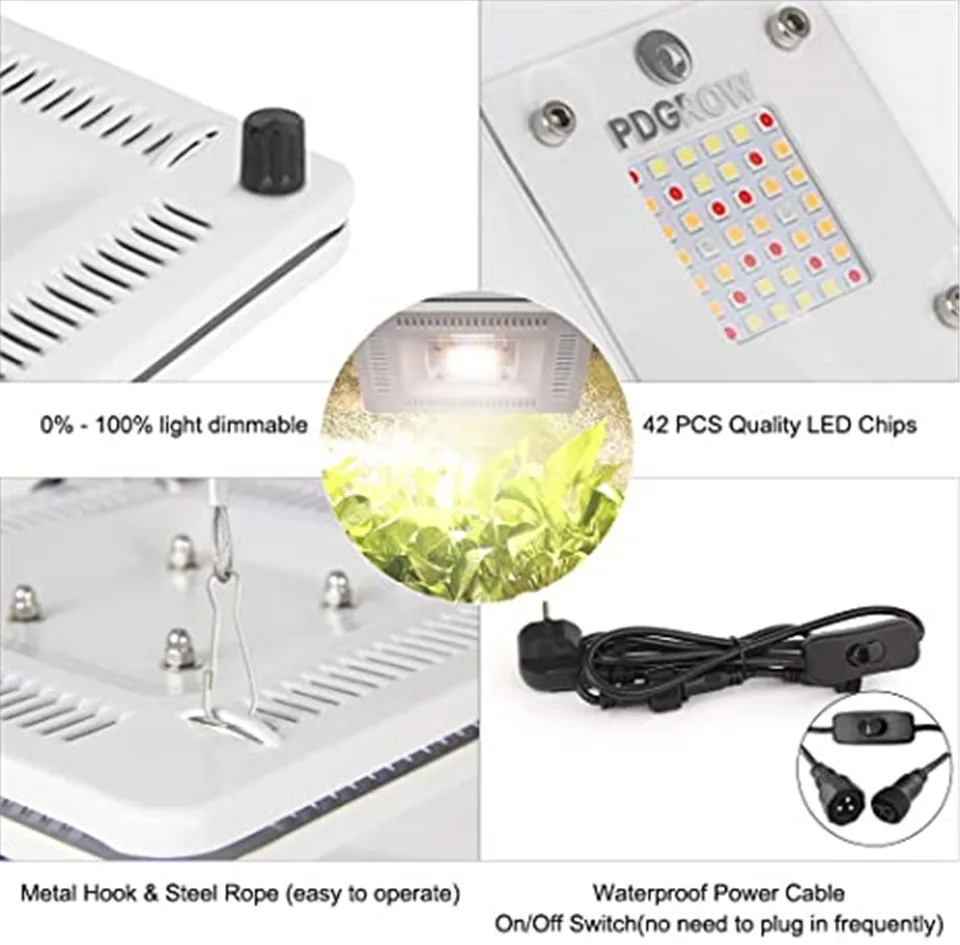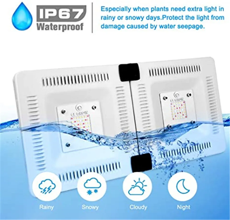 2. 120 градусов Большой стеклянный объектив, высокий светильник из-муфта эффективность и доходят в 97% светильник с высоким коэффициентом пропускания. Он может поставить высокий PAR выход 1028 мкмоль/м2/с, а также большую площадь освещения около 1 m2at 20 см (8 дюймов) высота.