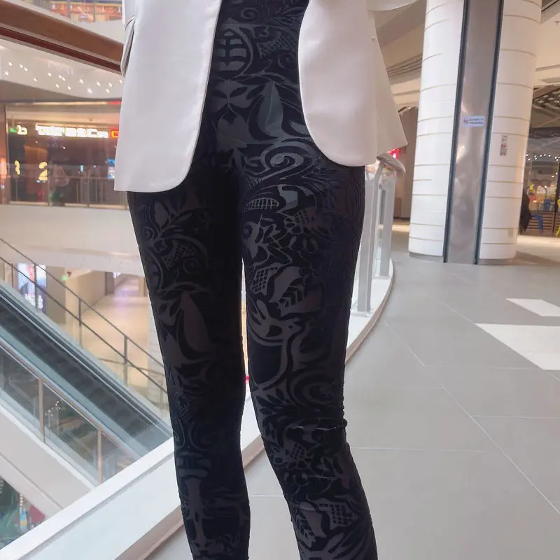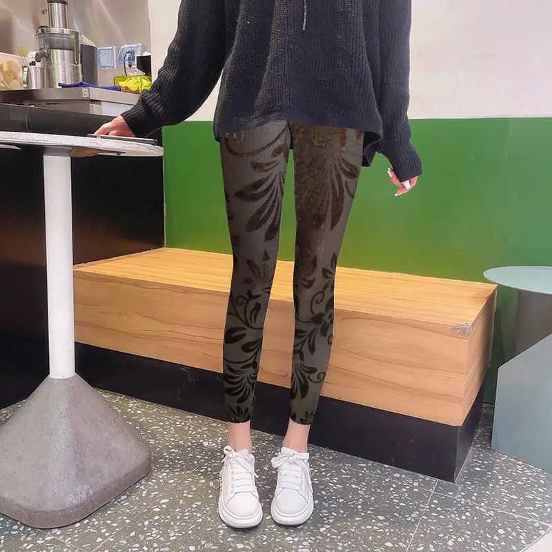 Женские леггинсы с перфорацией, стильные шелковые леггинсы из сетчатой пряжи с золотистыми вставками из бархата, весна-осень 2022