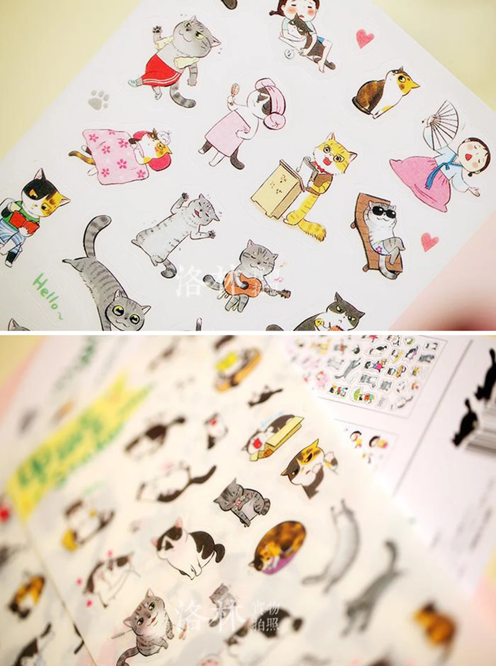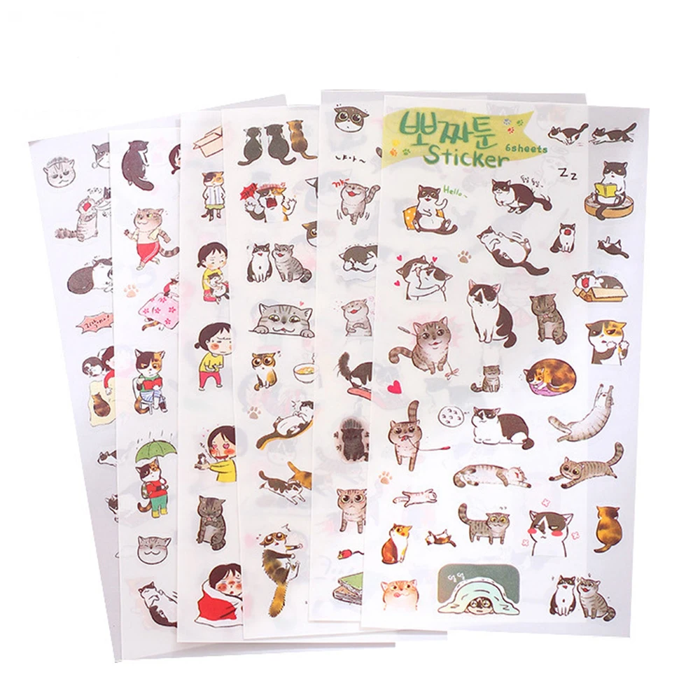 6 листов, пластиковые наклейки с милым мультяшным котом, сделай сам, дневник, альбомы, декоративные наклейки, стационарные наклейки