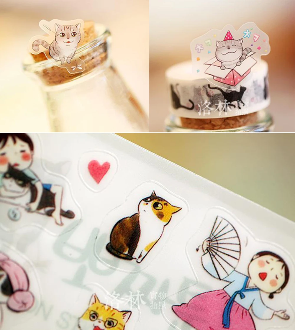 6 листов, милые Мультяшные пластиковые наклейки для кошек, DIY ежедневник, альбомы, декоративные наклейки, стационарные наклейки