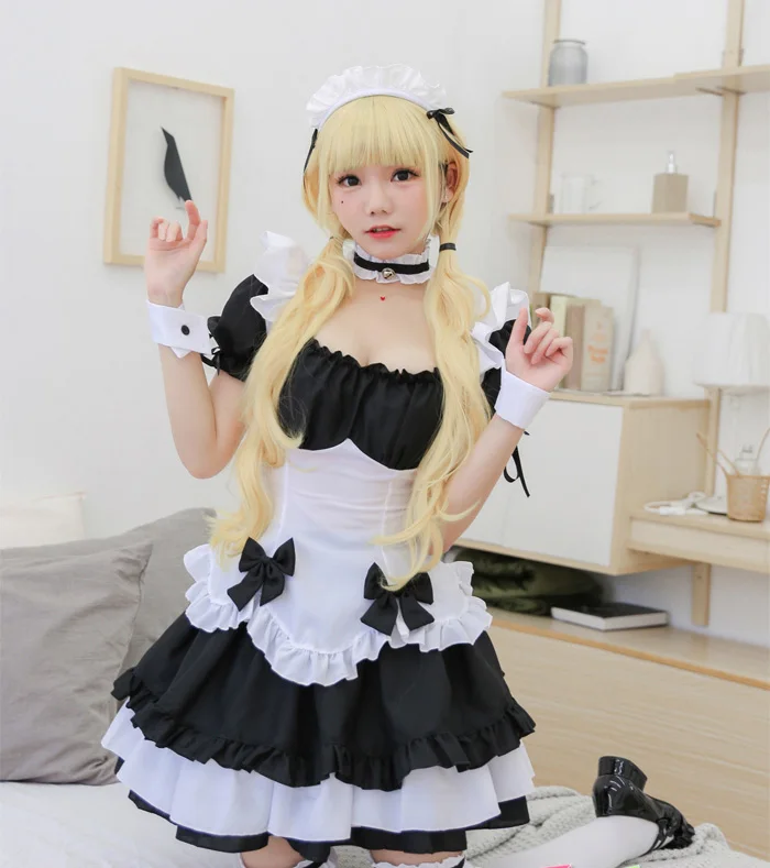 Черные костюмы горничной из аниме, юбка с французским бантом для девушек, Женский костюм Амина для косплея, костюмы официантки Вечерние