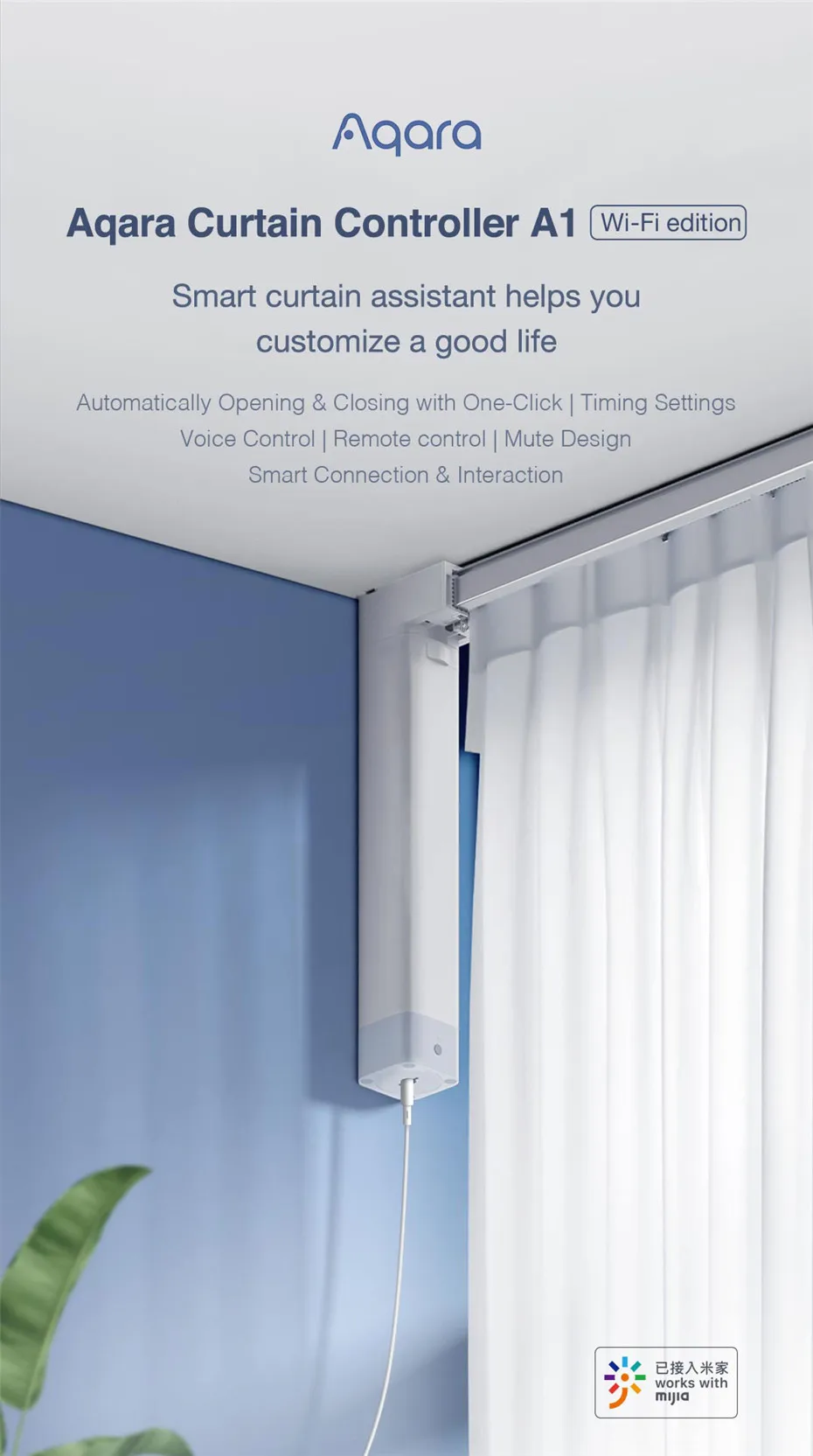 Wi-Fi Aqara A1 + пульт дистанционного управления, для mijia smart home, Умный интеллектуальный электродвигатель для штор, работает с mijia Mihome
