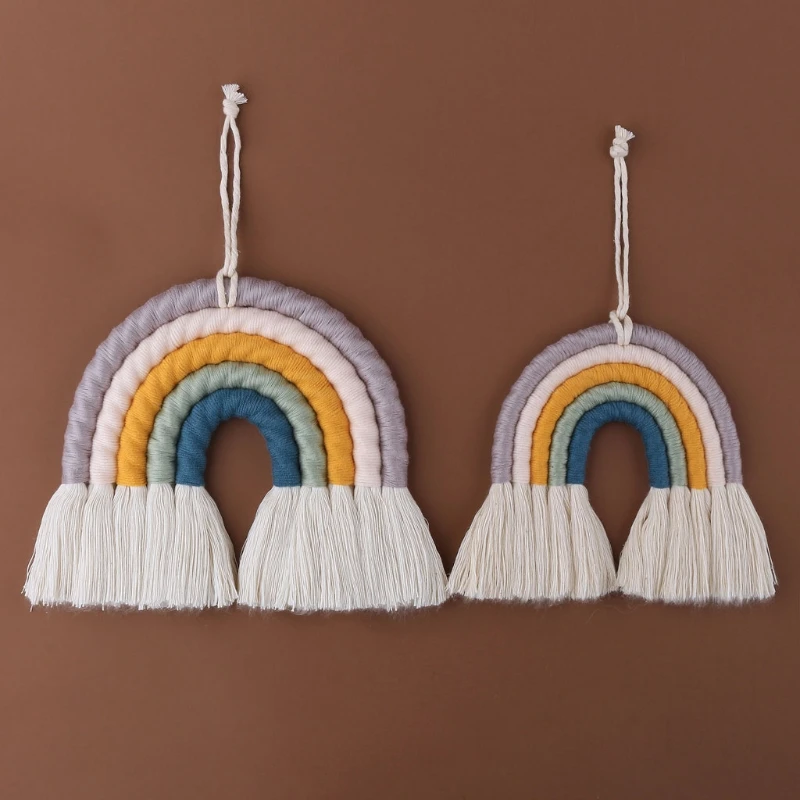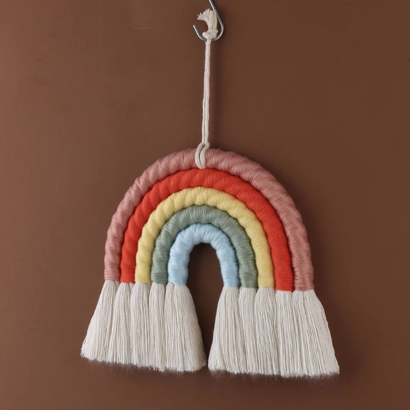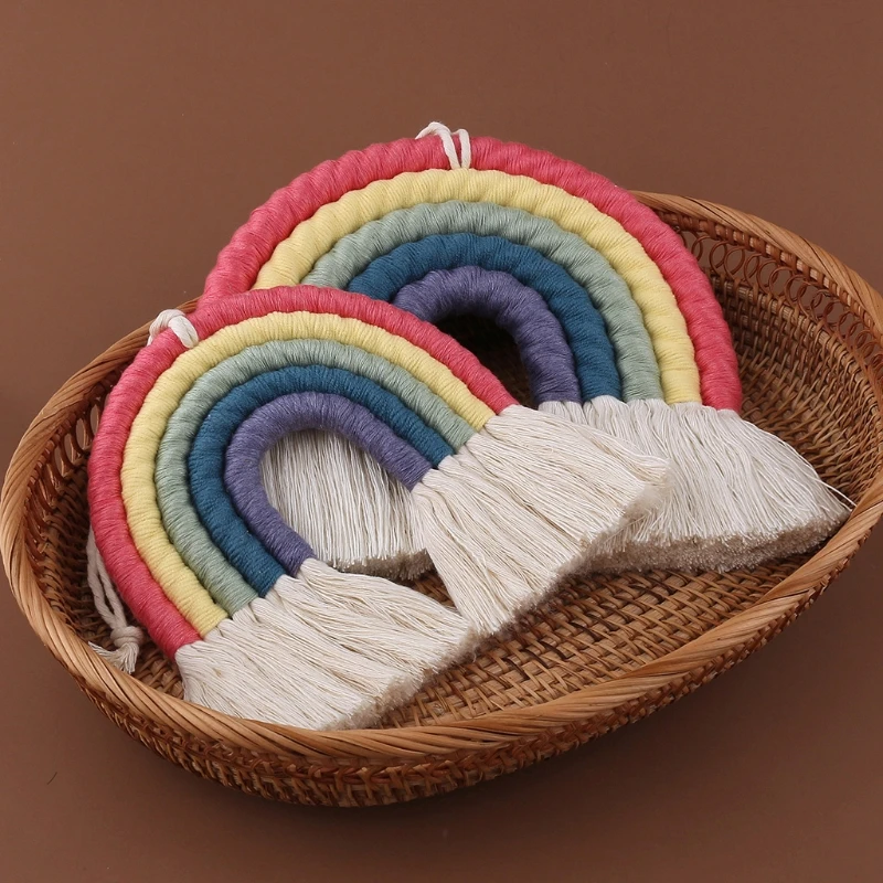 Материал: сделанные вручную красивые украшения из пряжи и хлопковой веревки. Добавьте характер и очарование к любой стене в вашем доме с помощью этой тканой радужной стены.