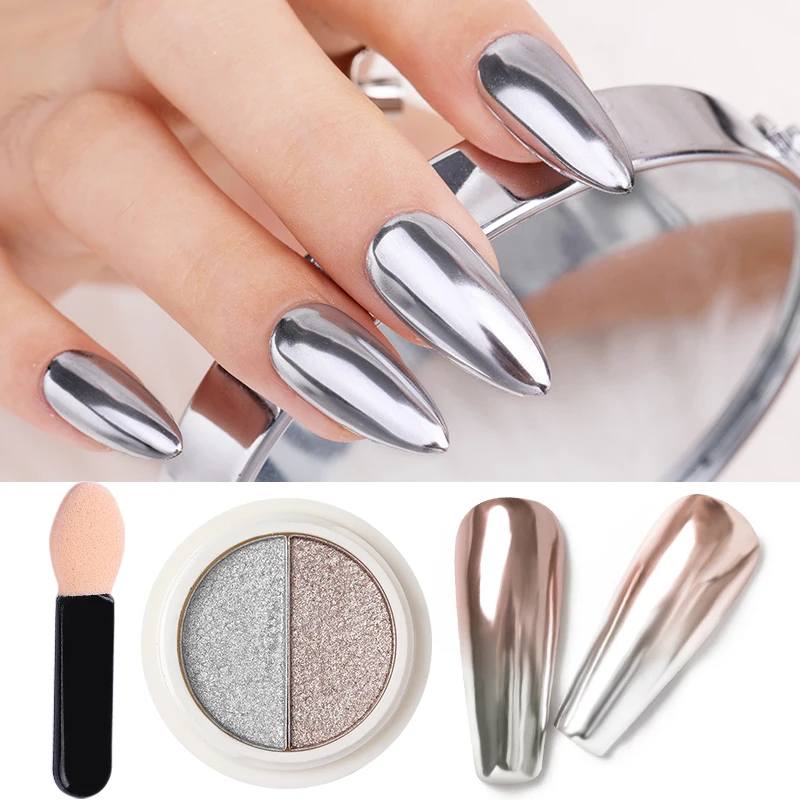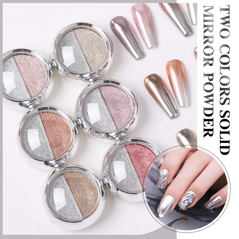 Двухцветный Блестящий металлический блеск для ногтей, радужная хромированная пыль, блестящие хлопья, пигмент сделай сам, украшение для дизайна ногтей
