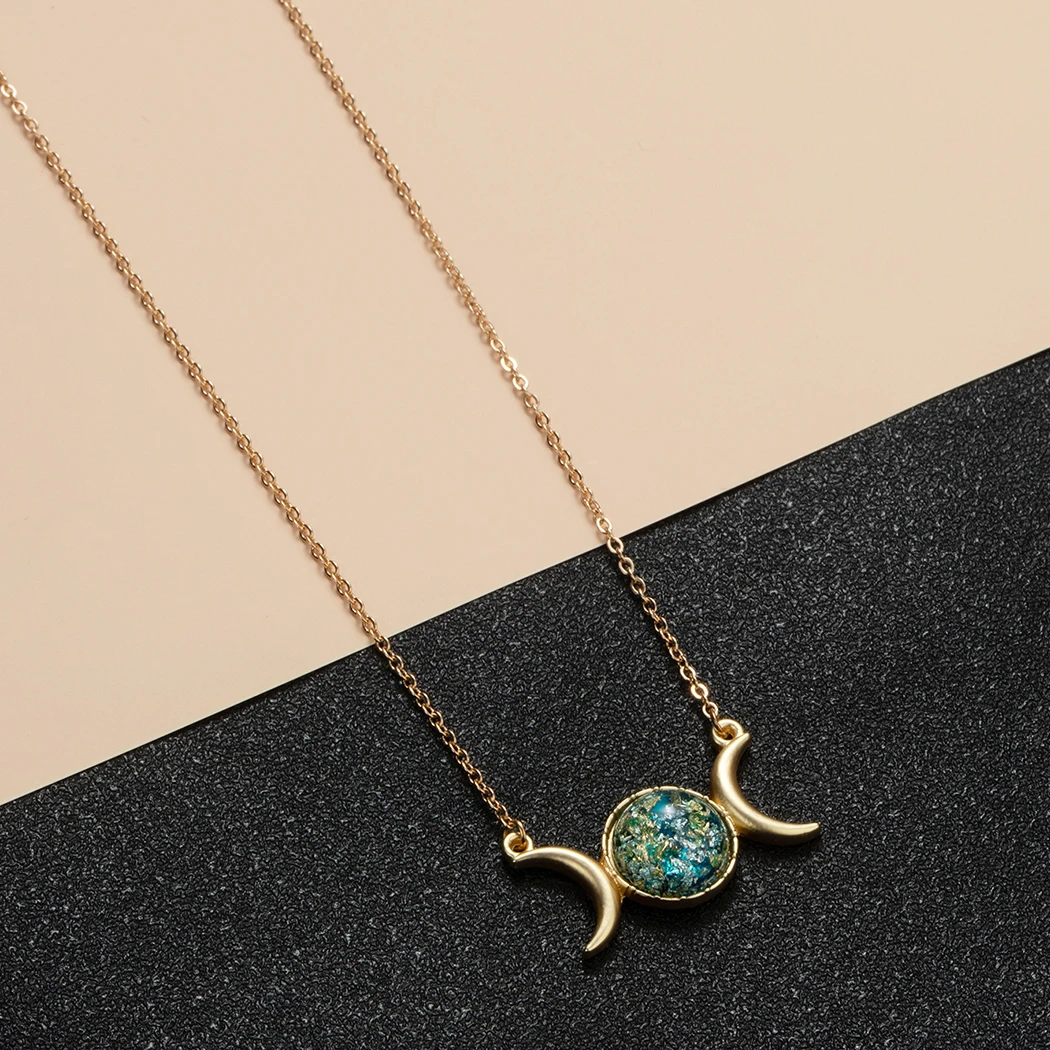 Тройной полумесяц земной шар ожерелье для женщин с украшением в виде кристаллов камень серебро Boho ювелирные изделия кулон ожерелье чокер в подарок