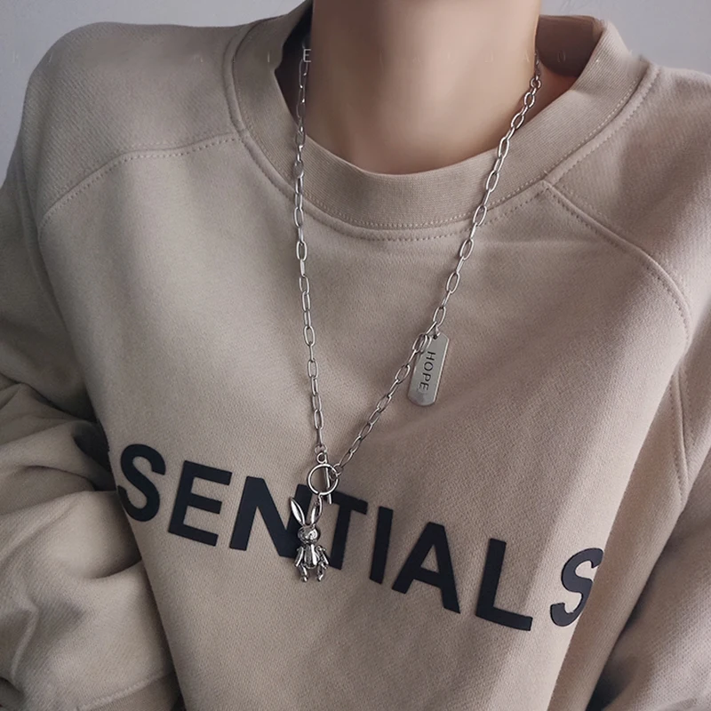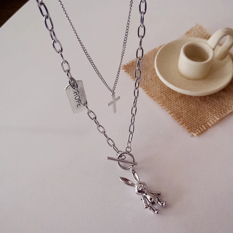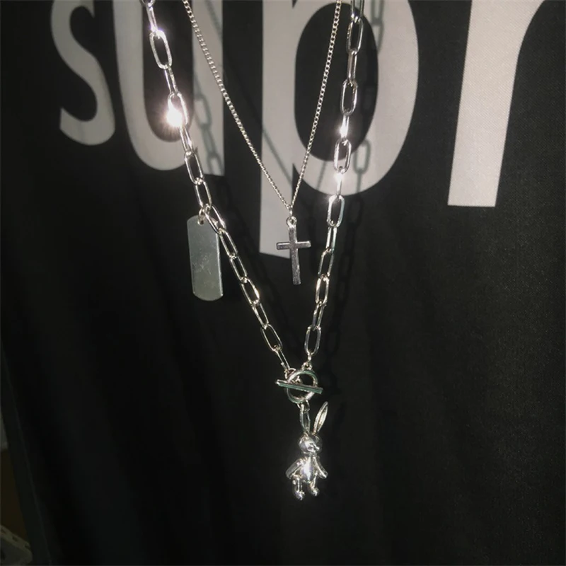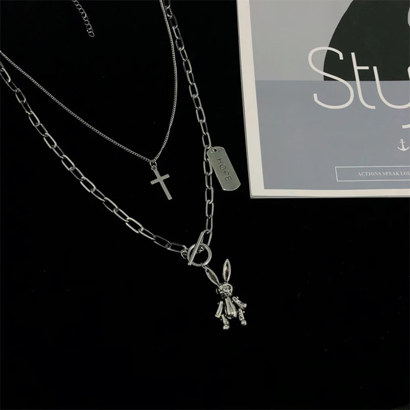 Многослойное ожерелье из нержавеющей стали в стиле хип-хоп с длинной цепочкой для женщин и мужчин, ювелирное изделие, подарок, 2021, новая мода, подвеска с кроличьим крестом