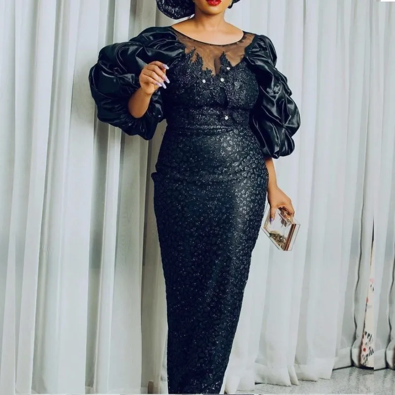 Африканские черные вечерние платья с блестками, юбка-годе, разноцве...