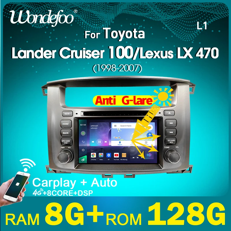 Aвтомагнитола 2дин android 10 с экраном магнитола Автомобильный радиоприемник, мультимедийный плеер для Toyota Lander Cruiser 100 Lexus LX 470 1998-2007 с bluetooth IPS магнитоладляавтоАудио для авто для автомобиля