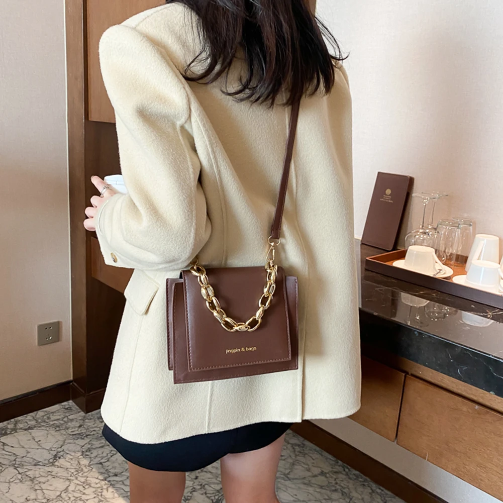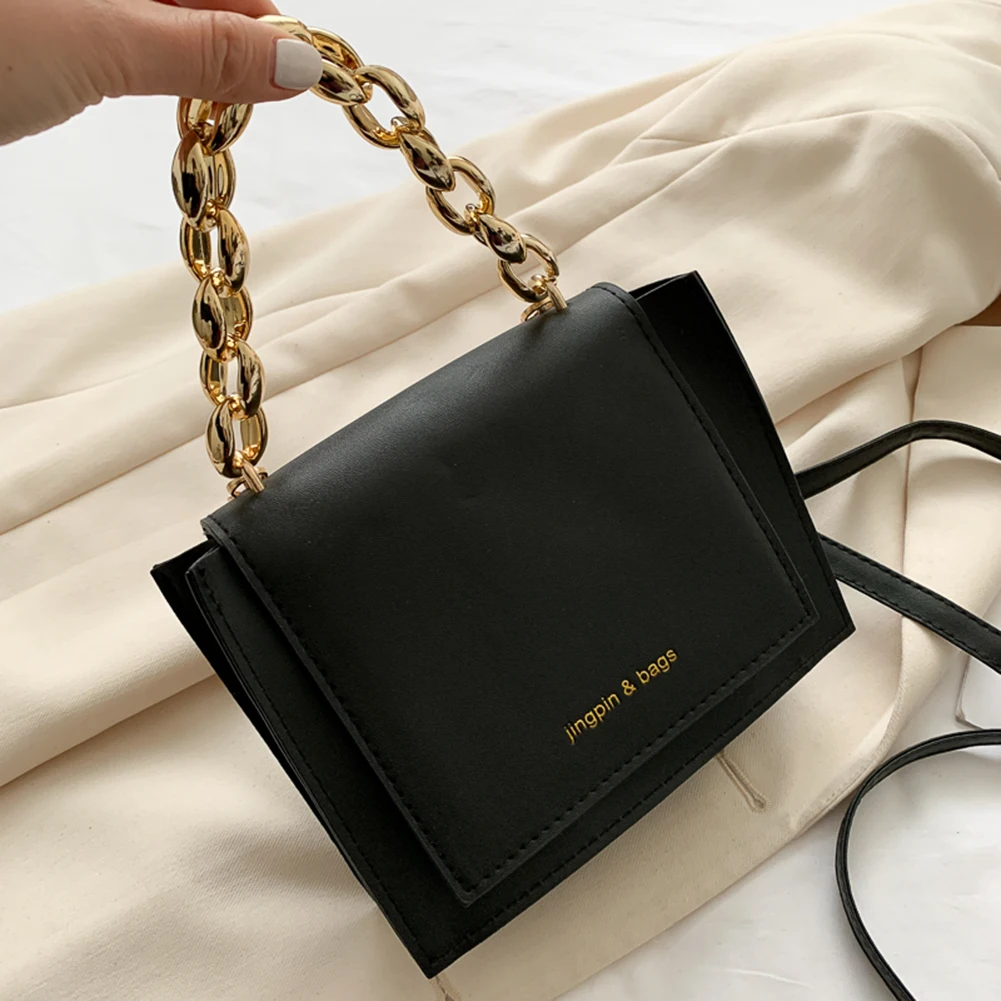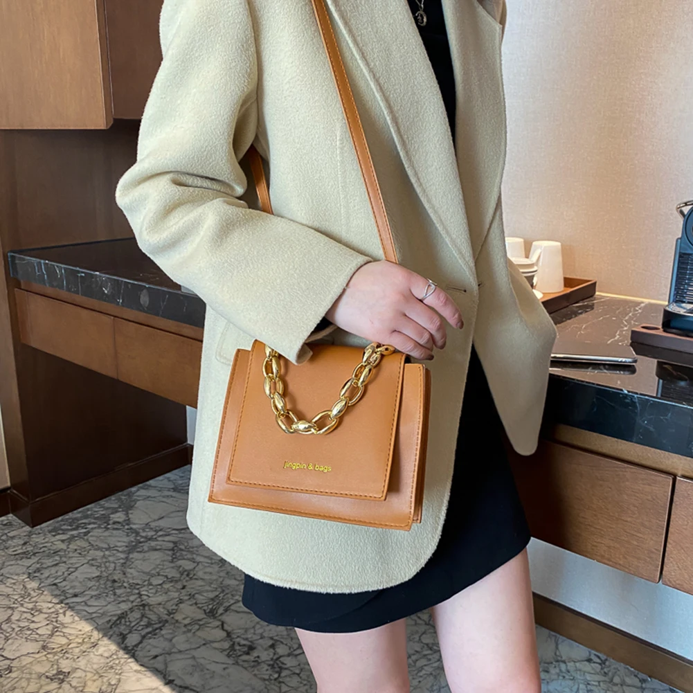 Женская сумка через плечо, из искусственной кожи, с цепочкой, квадратная, 2021