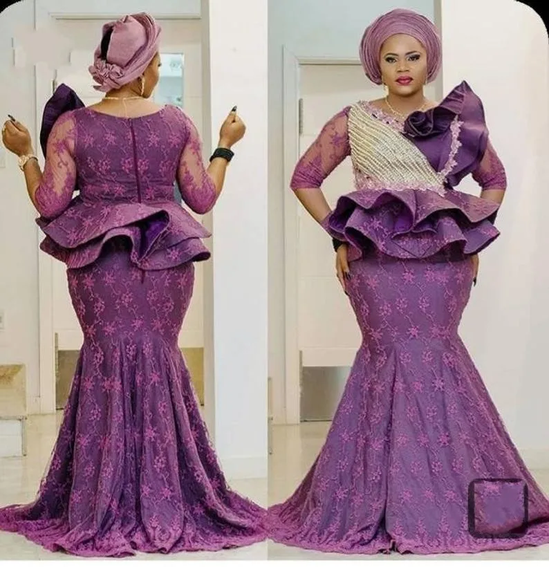 Африканские нигерийские вечерние платья фиолетового цвета Aso Ebi с...