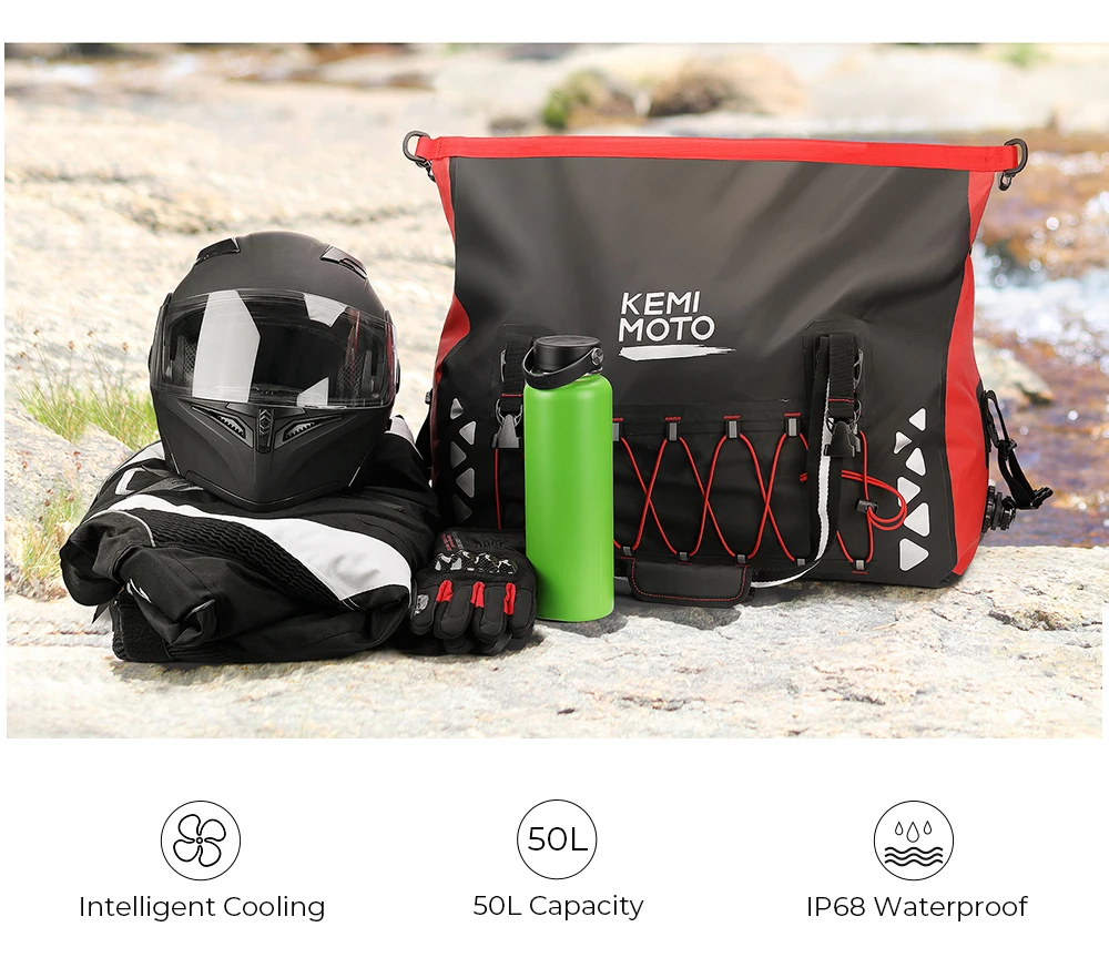 Сумка склеена (а не сшита) из довольно тонкой армированной клеёнки, которая по качеству 100% похожа на материал для каркасного уличного бассейна Intex. Материал прочный на разрыв, , но тонкий и нестойкий к протиранию. В этом плане, сумка для перевозки грузов на лошадях из Декатлона на голову выше (сшита из толстой кордуры, снаружи прорезинена, при этом ещё и дешевле). Но зато в сумке от Kemimoto есть пара внешних карманов и удобная внешняя резинка, для пары полторашек воды. Решать вам. Моё мнение, если на пару сезонов хватит - отлично.