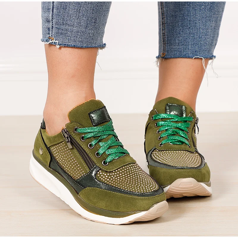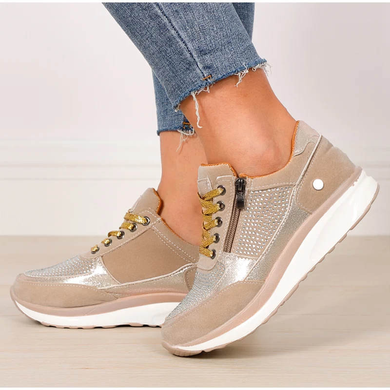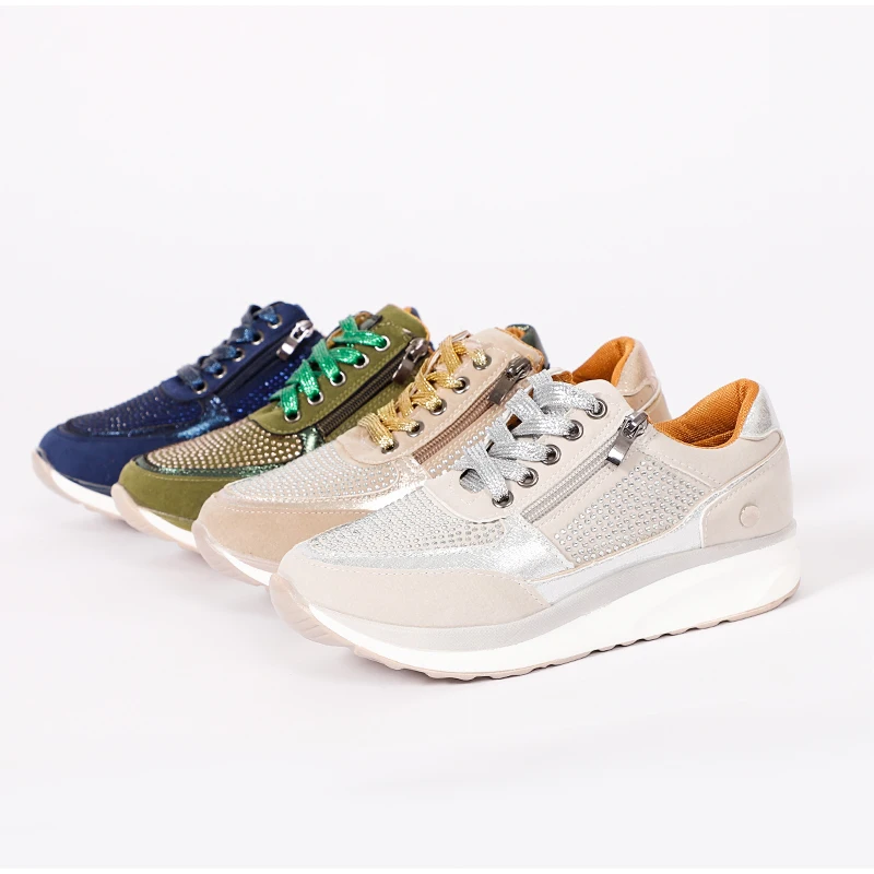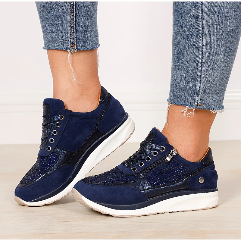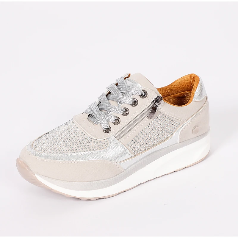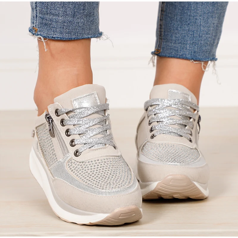 Женские кроссовки из Вулканизированной Ткани, на шнуровке, повседневные, на платформе, с блестками, для осени, 2021