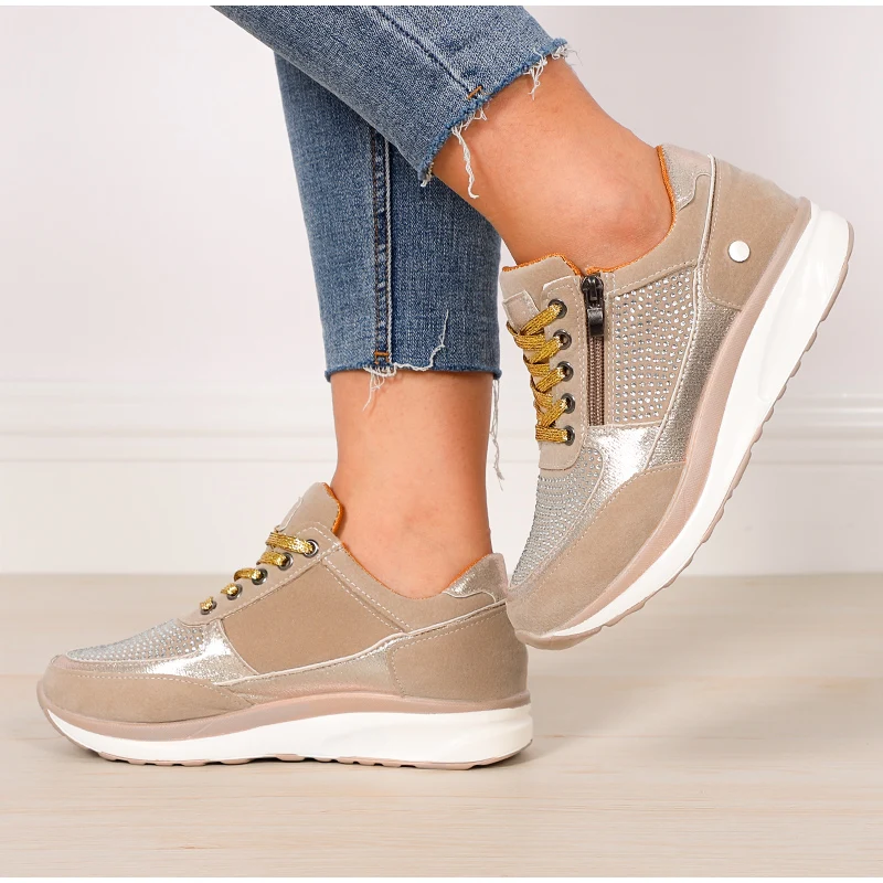 Женские кроссовки на танкетке, Вулканизированная подошва, со страза...
