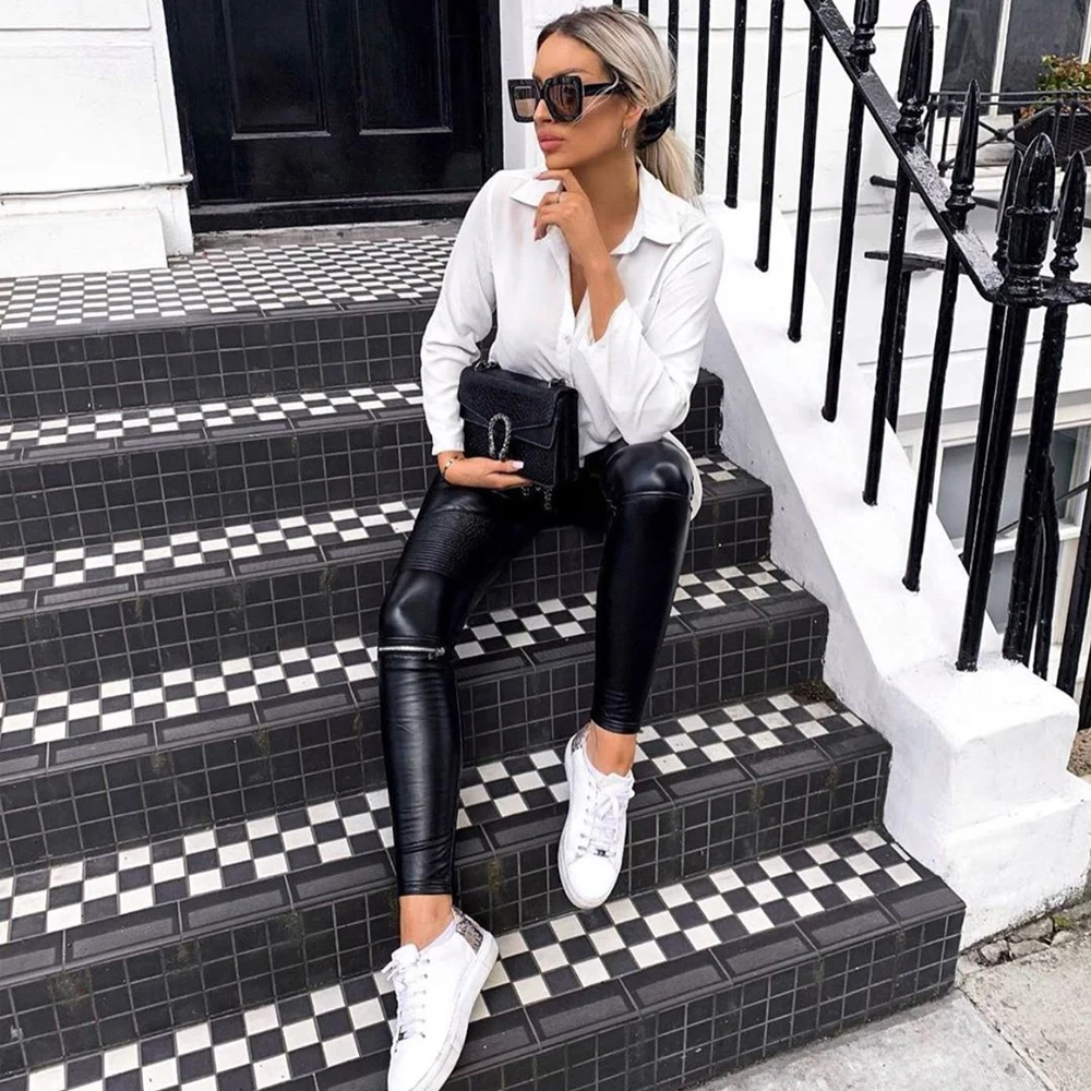 Женские повседневные черные брюки Melody Tregging, модные брюки из лакированной кожи на молнии размера плюс
