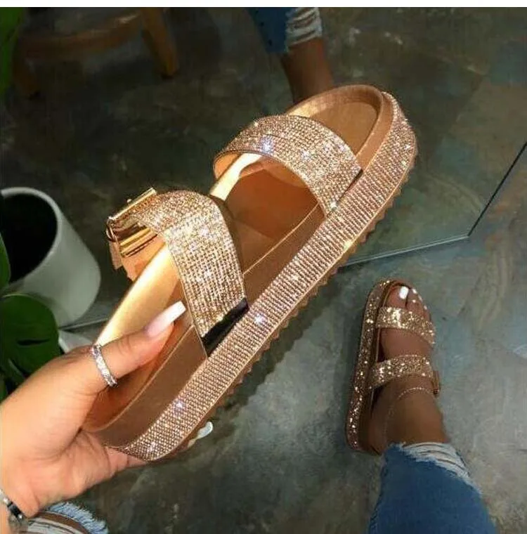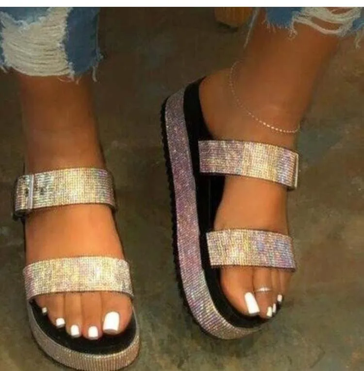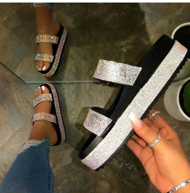 2021 женские босоножки; Летняя модная женская обувь; Босоножки на платформе; Женские блестящие шлепанцы; Женская обувь на толстой подошве