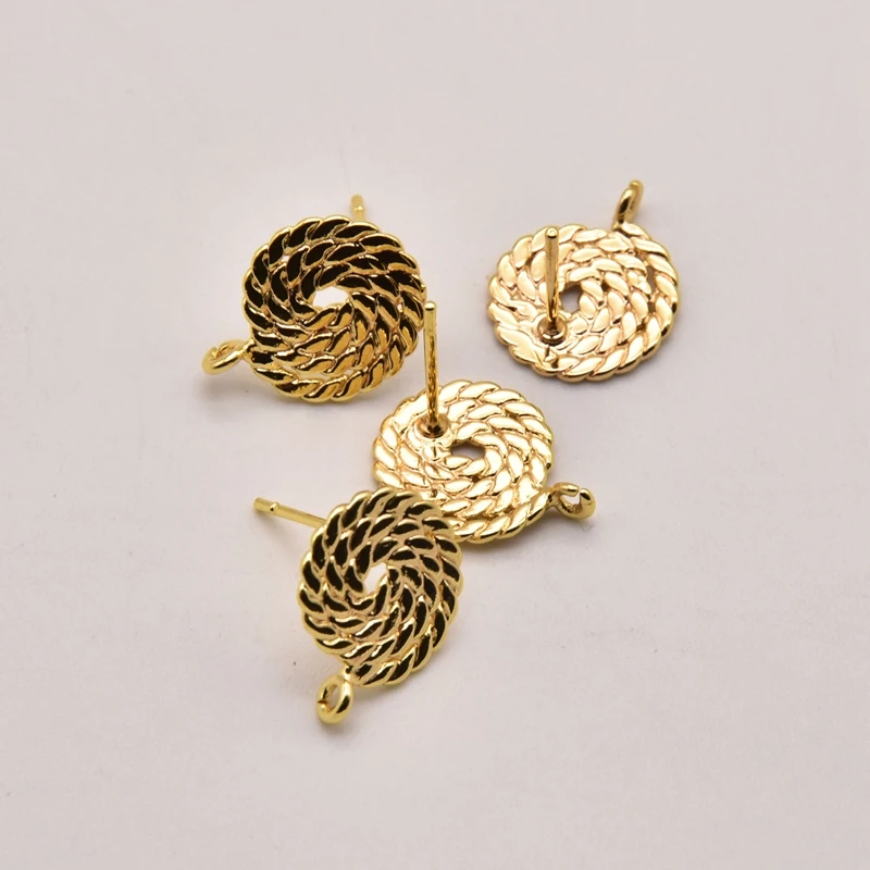 5 паралот 12 мм покрытый 18 каратным Латунь Позолоченные леденец на палочке Форма круглые серьги-гвоздики милый аксессуаров для самостоятельного изготовления ювелирных украшений серьги JA0377