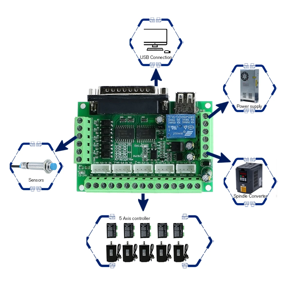 Склад ЕС плата контроллера ЧПУ 1 шт 5 оси MACH3 motion карты + USB кабель + DB25 параллельный кабель