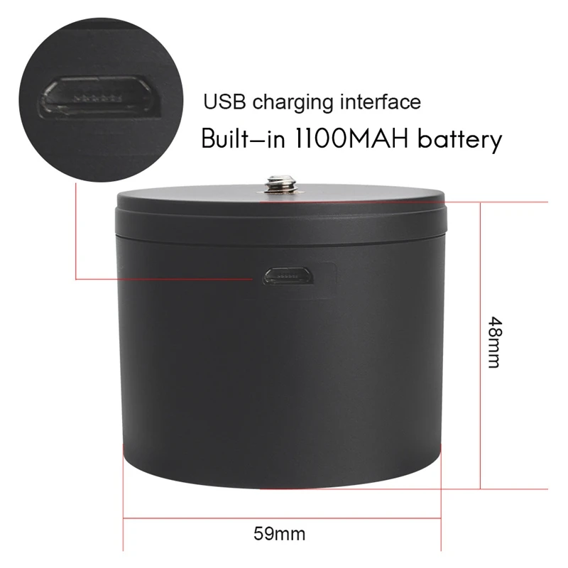 1. Идеально совместим: электрический адаптер для штатива для iphone/смартфона (подходит для цифровой камеры мобильный телефон-2,16 дюйма)/мини SLR (вес менее 1 фунта) для Gopro hero 6 /hero 5 /hero 8/ hero 4 /hero 3/hero 3/hero session и других экшн-камер.2. Встроенный литиевый аккумулятор: Встроенный литиевый аккумулятор мА, может работать около 2 часов после полной зарядки. Вам нужно только полностью зарядить адаптер для электрического штатива suptig, тогда он сможет обеспечить вам Мониторинг безопасности телефона/камеры на 360 градусов и замедленную съемку, чтобы вы могли получить потрясающее и идеальное видео. Процесс зарядки не влияет на использование, обеспечивая длительную фотосъемку.3. Несколько вариантов для удовлетворения ваших требований: Выбор времени вращения (10s 30s 60s 100s 10m 30m 60m 120m), выбор поворотного угла (360 ° 270 ° 180 ° 90 °), режим (круговое вращение/одиночное вращение/вращение вперед и назад/90 ° для остановки).4. Небольшой объем и Отличное использование: совместимые соединения адаптер для крепления электрического штатива Suptig можно подключить к моноподу для селфи с винтом 1/4/мини-штативу/профессиональному штативу для вашего удобства и является незаменимыми аксессуарами для фотосъемки.Цвет: черныйМатериал: алюминиевый сплавРазмер: 48x59 ммПосылка1 адаптер для электрического штатива Suptig1 х держатель для телефона1 х мини-адаптер для штатива1 х Новый длинный винт1 x винт 1/41 кабель micro-USB1 х сумка из микрофибрыВ комплект входит только указанное выше содержимое, другие продукты в комплект не входят.Примечание: светильник вая съемка и различные дисплеи могут привести к тому, что цвет товара на изображении будет немного отличаться от реального. Допустимая погрешность измерения +/- 1-3 см.