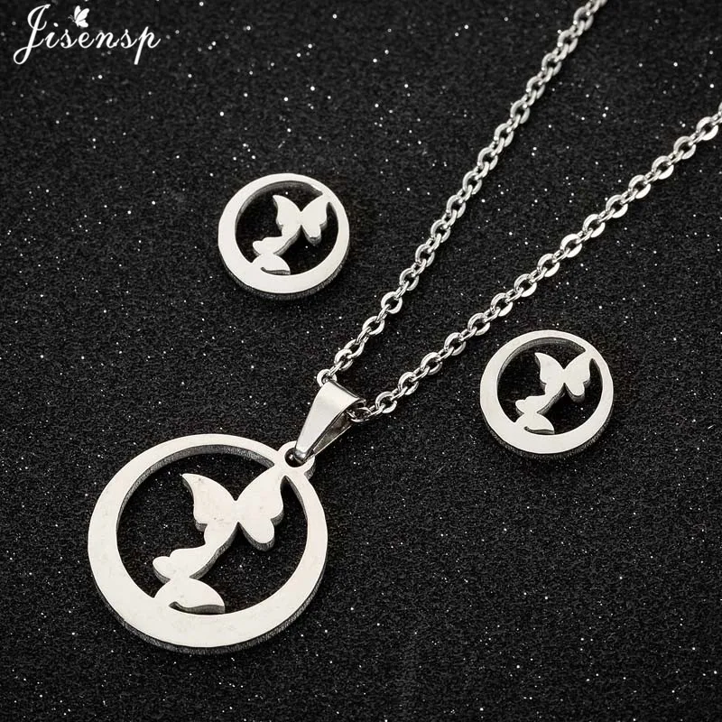 В богемном стиле Древо жизни ожерелья Золото наборы ювелирных украшений из нержавеющей стали для женщин милая велосипедная бабочки серьги необычный подарок для влюбленных