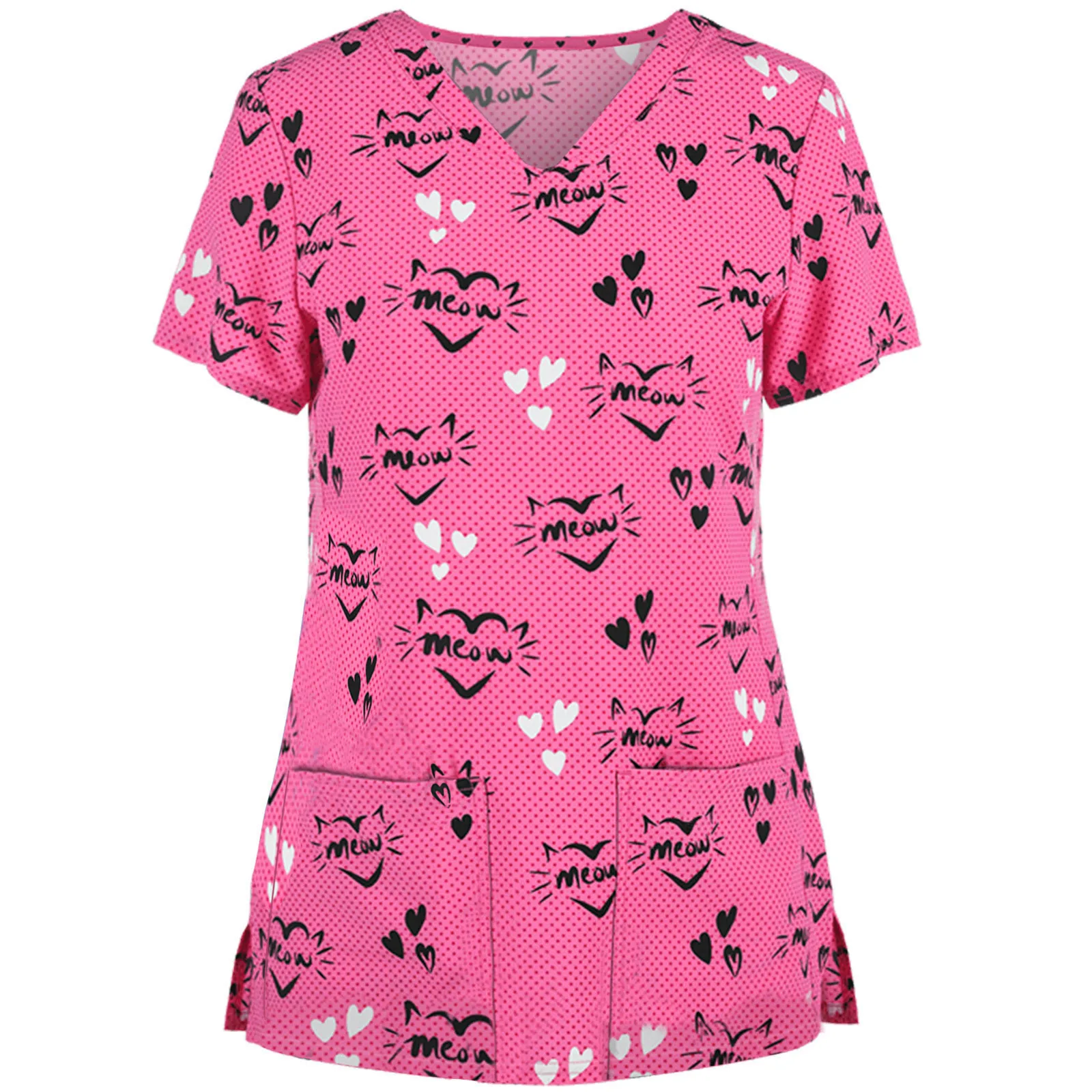 Униформа медсестры, женская блузка с коротким рукавом, с мультяшным...