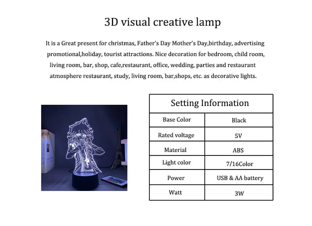 Аниме 3D лампа Danganronpa V3 Nagito Komaeda светодиодный ночсветильник лампа для спальни Декор Детский подарок